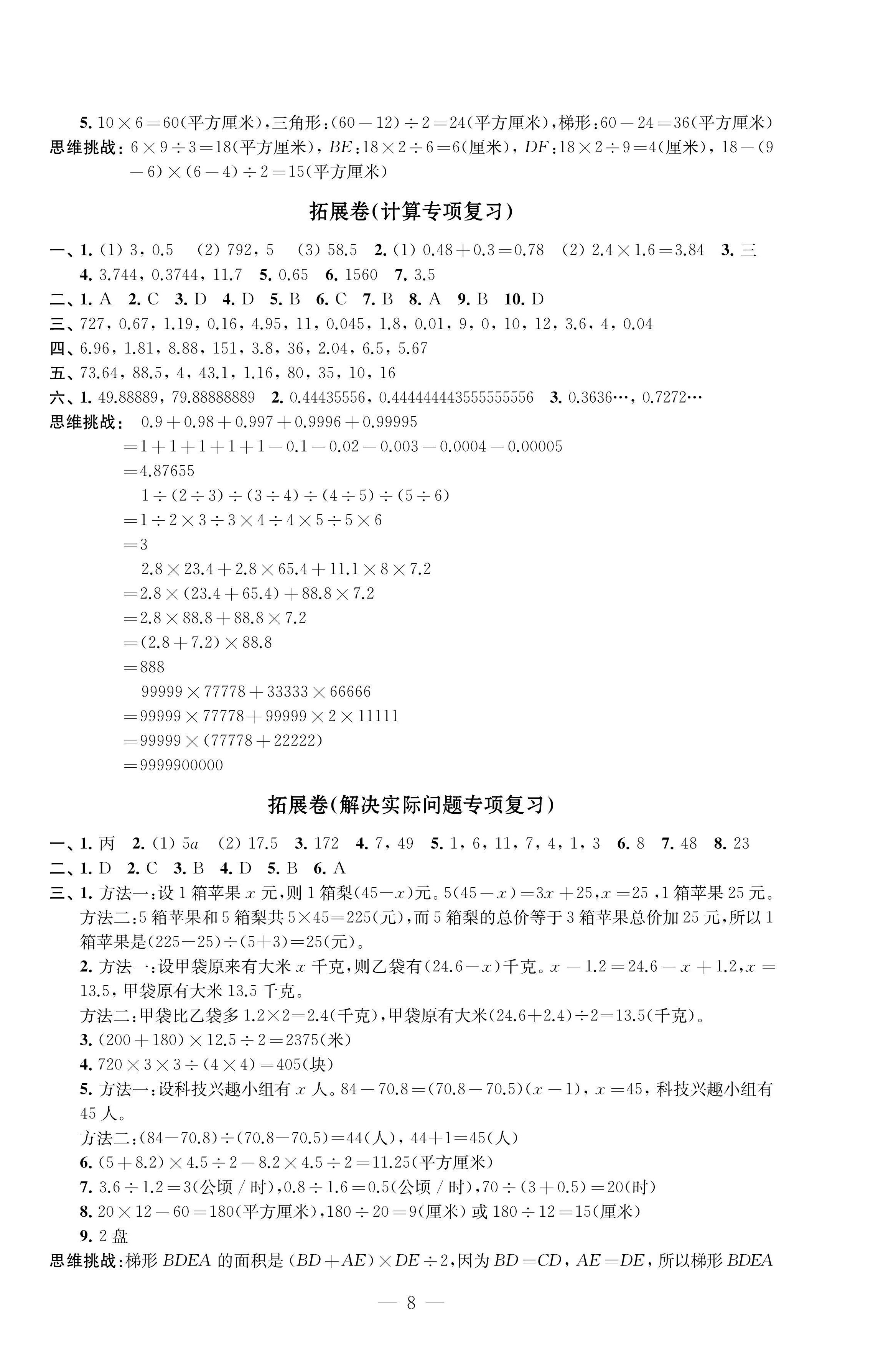注:目前有些书本章节名称可能整理的还不是很完善,但都是按照顺序排列的,请同学们按照顺序仔细查找。练习册 2022年强化拓展卷五年级数学上册苏教版优+版 答案主要是用来给同学们做完题方便对答案用的,请勿直接抄袭。