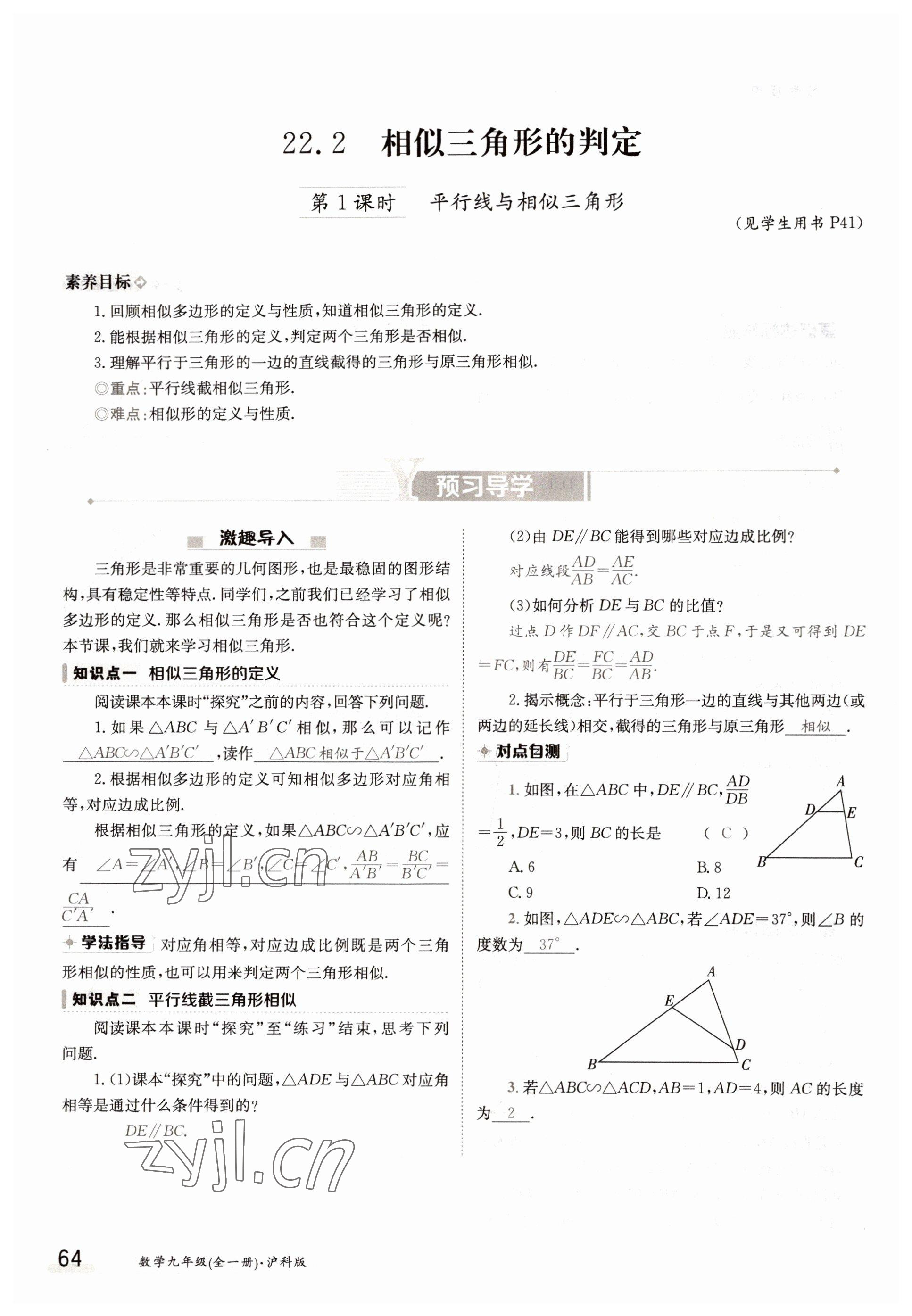 注:目前有些书本章节名称可能整理的还不是很完善,但都是按照顺序排列的,请同学们按照顺序仔细查找。练习册 2022年三段六步导学案九年级数学全一册沪科版 答案主要是用来给同学们做完题方便对答案用的,请勿直接抄袭。