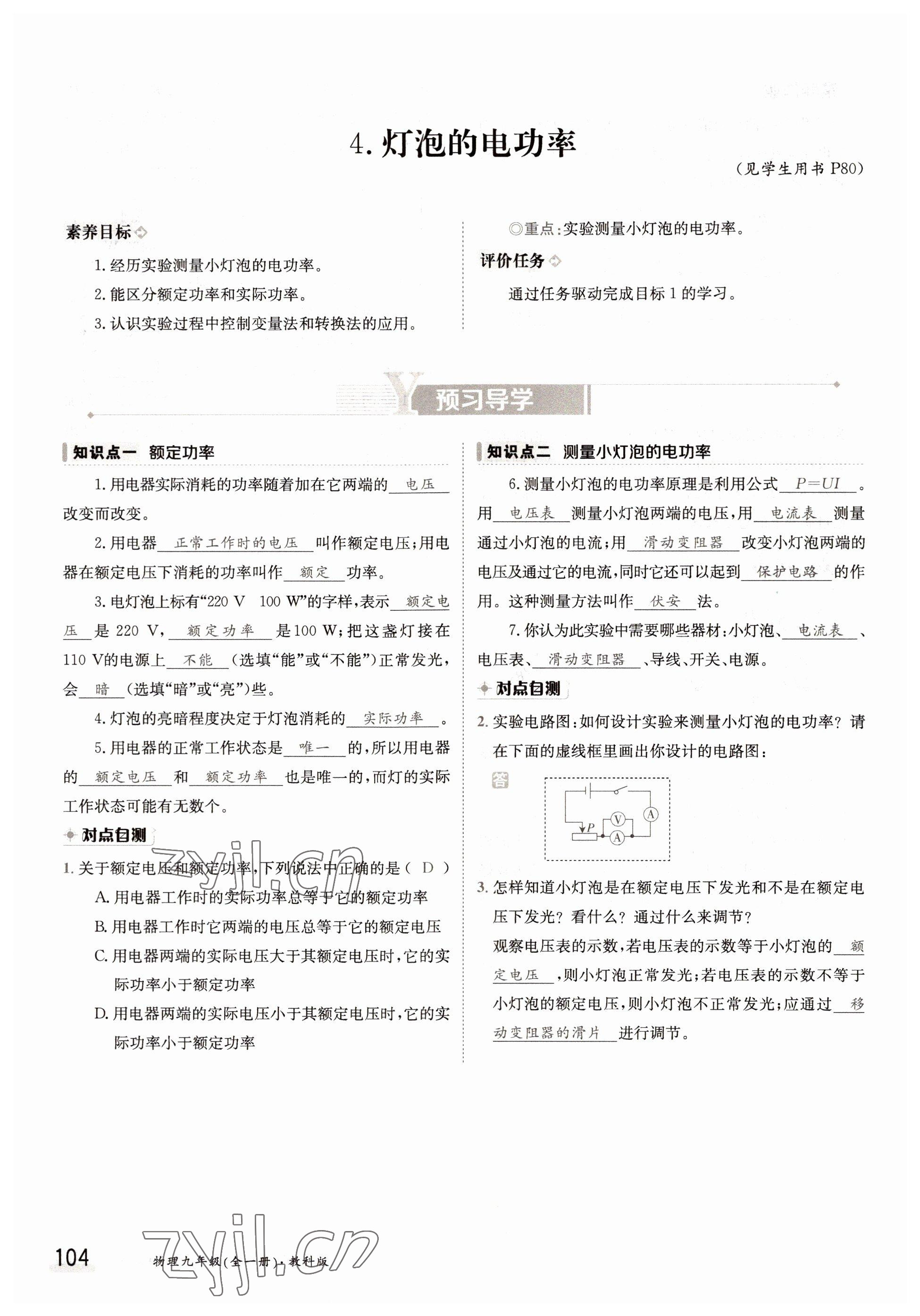 注:目前有些书本章节名称可能整理的还不是很完善,但都是按照顺序排列的,请同学们按照顺序仔细查找。练习册 2022年三段六步导学案九年级物理全一册教科版 答案主要是用来给同学们做完题方便对答案用的,请勿直接抄袭。