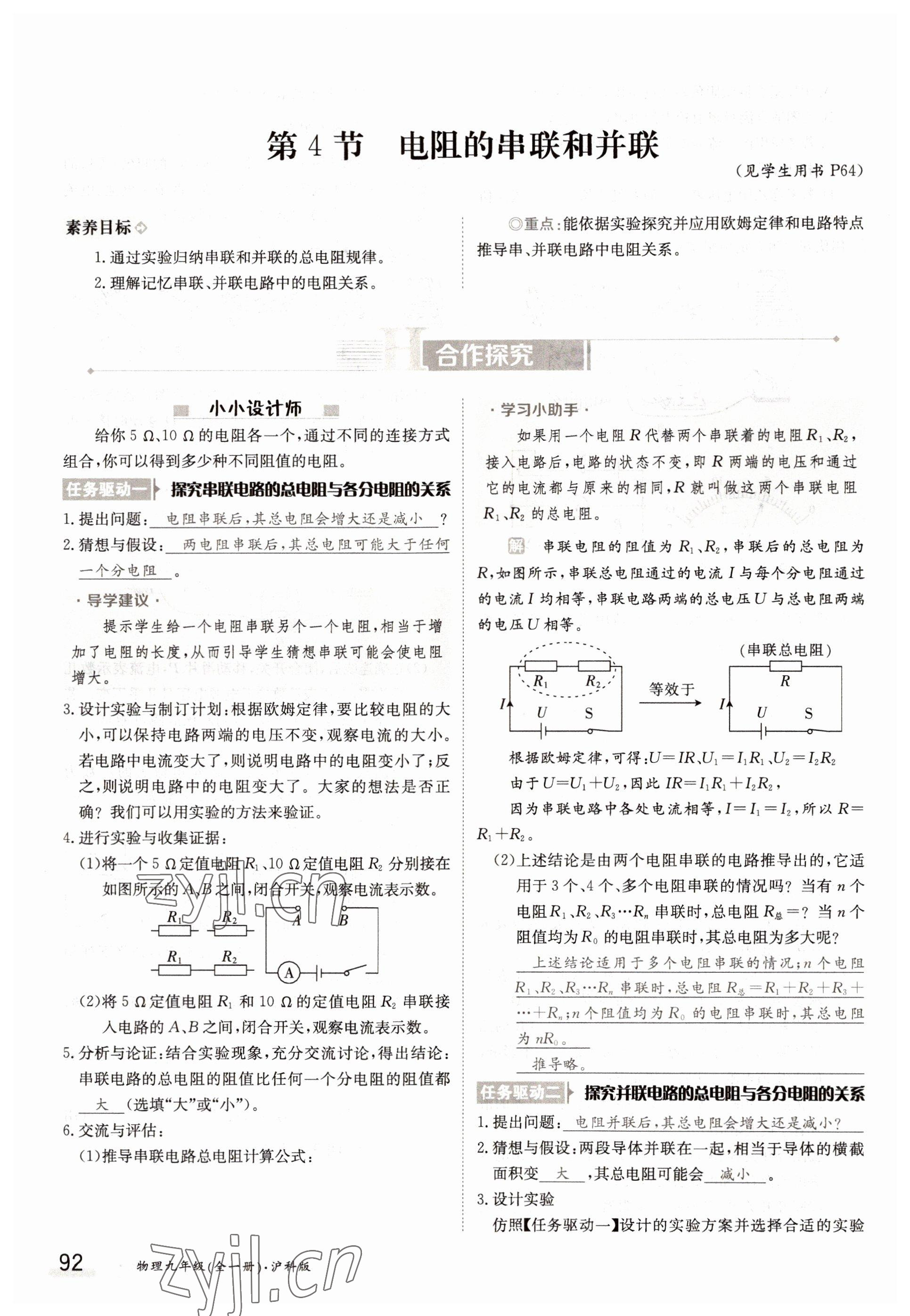 注:目前有些书本章节名称可能整理的还不是很完善,但都是按照顺序排列的,请同学们按照顺序仔细查找。练习册 2022年三段六步导学案九年级物理全一册沪科版 答案主要是用来给同学们做完题方便对答案用的,请勿直接抄袭。