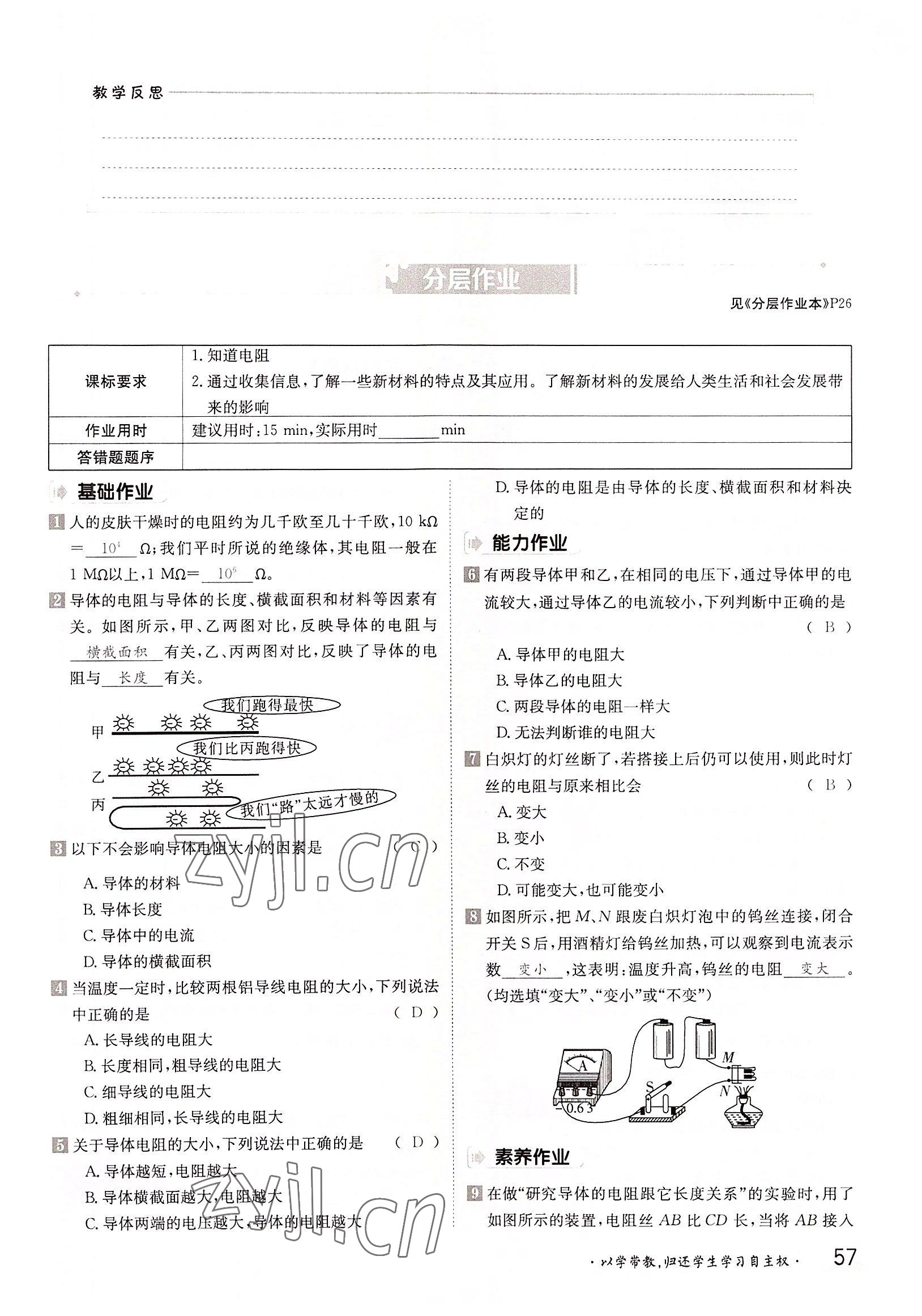 注:目前有些书本章节名称可能整理的还不是很完善,但都是按照顺序排列的,请同学们按照顺序仔细查找。练习册 2022年三段六步导学案九年级物理全一册沪粤版 答案主要是用来给同学们做完题方便对答案用的,请勿直接抄袭。