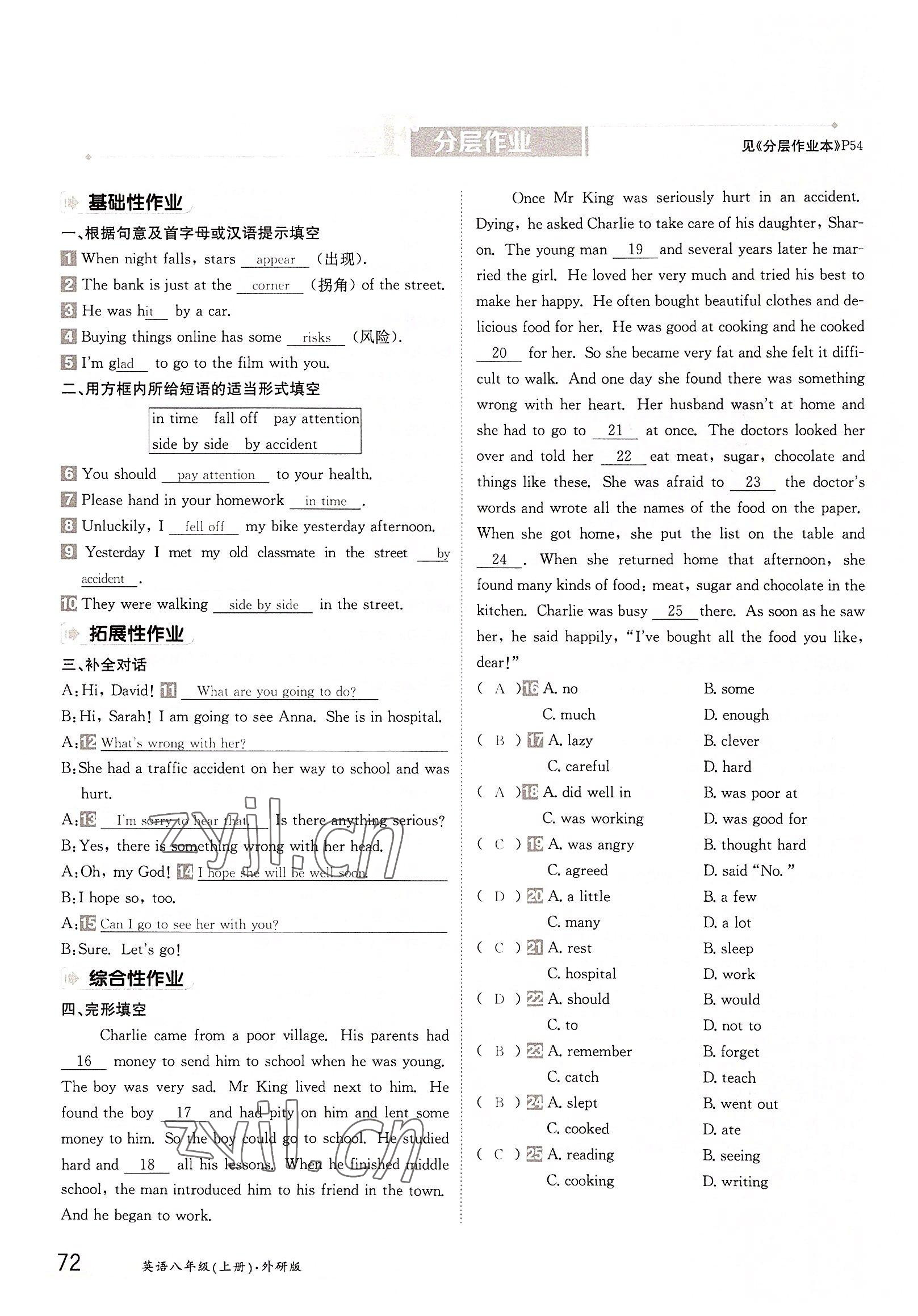 注:目前有些书本章节名称可能整理的还不是很完善,但都是按照顺序排列的,请同学们按照顺序仔细查找。练习册 2022年三段六步导学案八年级英语上册外研版 答案主要是用来给同学们做完题方便对答案用的,请勿直接抄袭。