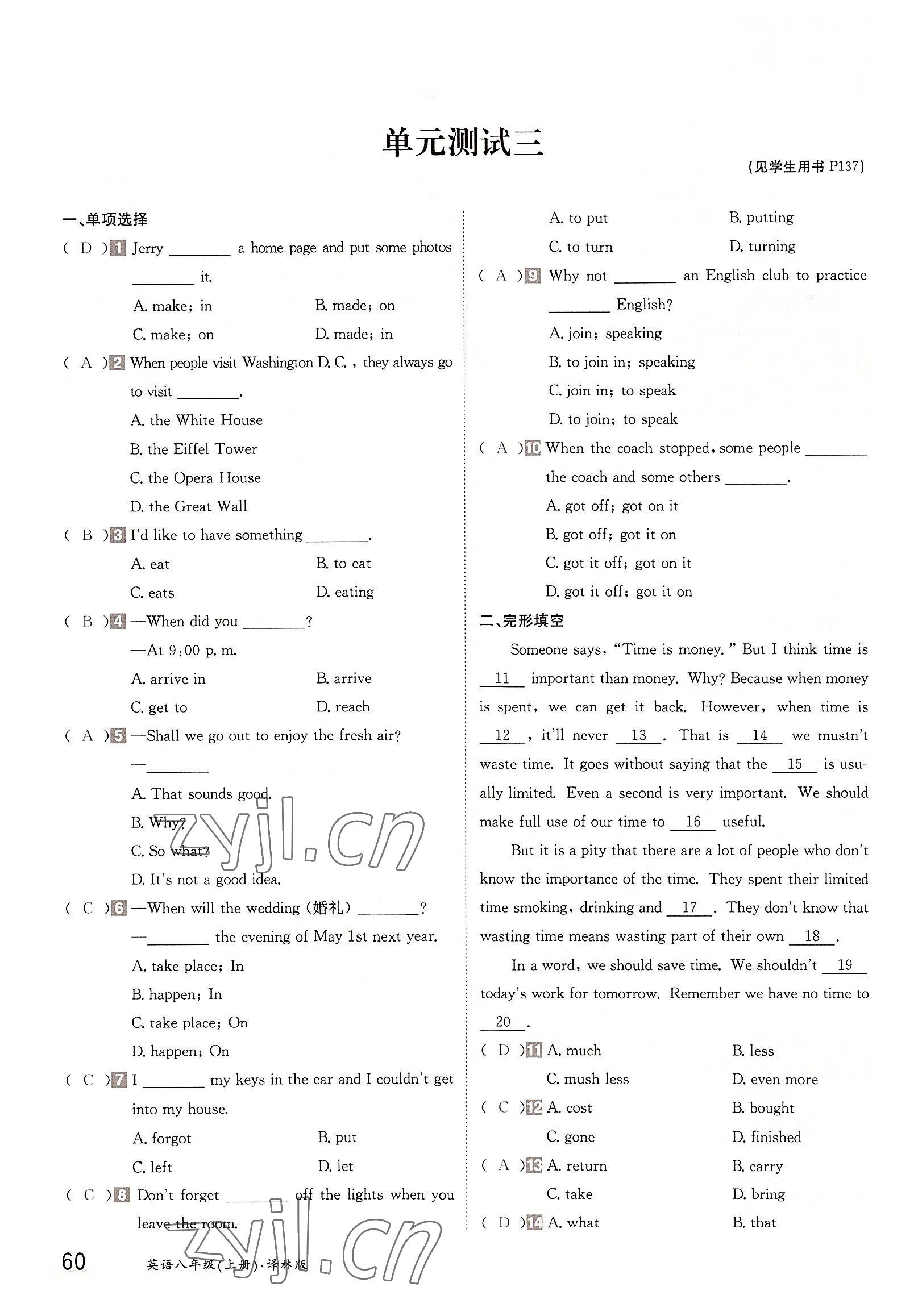 注:目前有些书本章节名称可能整理的还不是很完善,但都是按照顺序排列的,请同学们按照顺序仔细查找。练习册 2022年三段六步导学案八年级英语上册译林版 答案主要是用来给同学们做完题方便对答案用的,请勿直接抄袭。