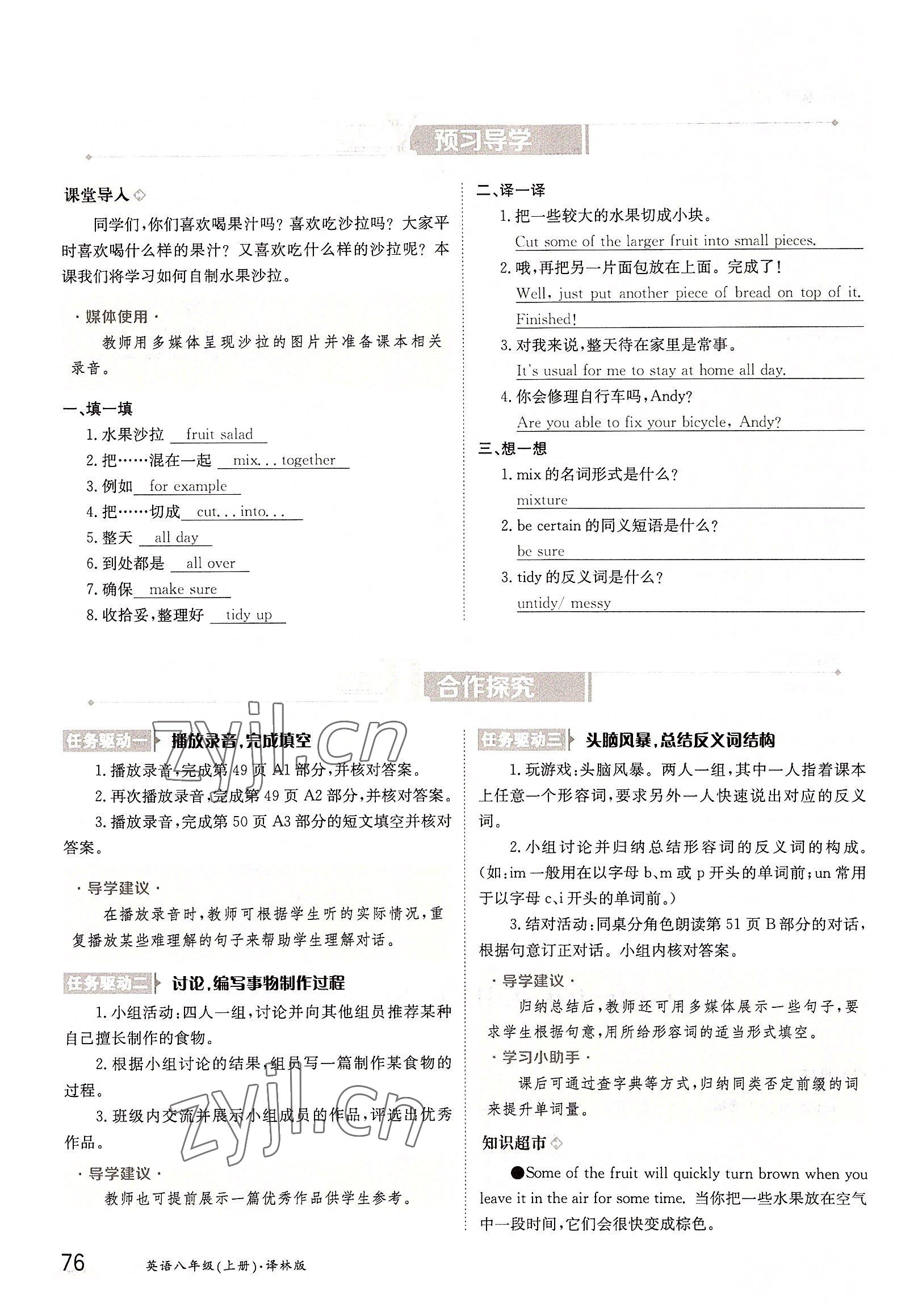 注:目前有些书本章节名称可能整理的还不是很完善,但都是按照顺序排列的,请同学们按照顺序仔细查找。练习册 2022年三段六步导学案八年级英语上册译林版 答案主要是用来给同学们做完题方便对答案用的,请勿直接抄袭。
