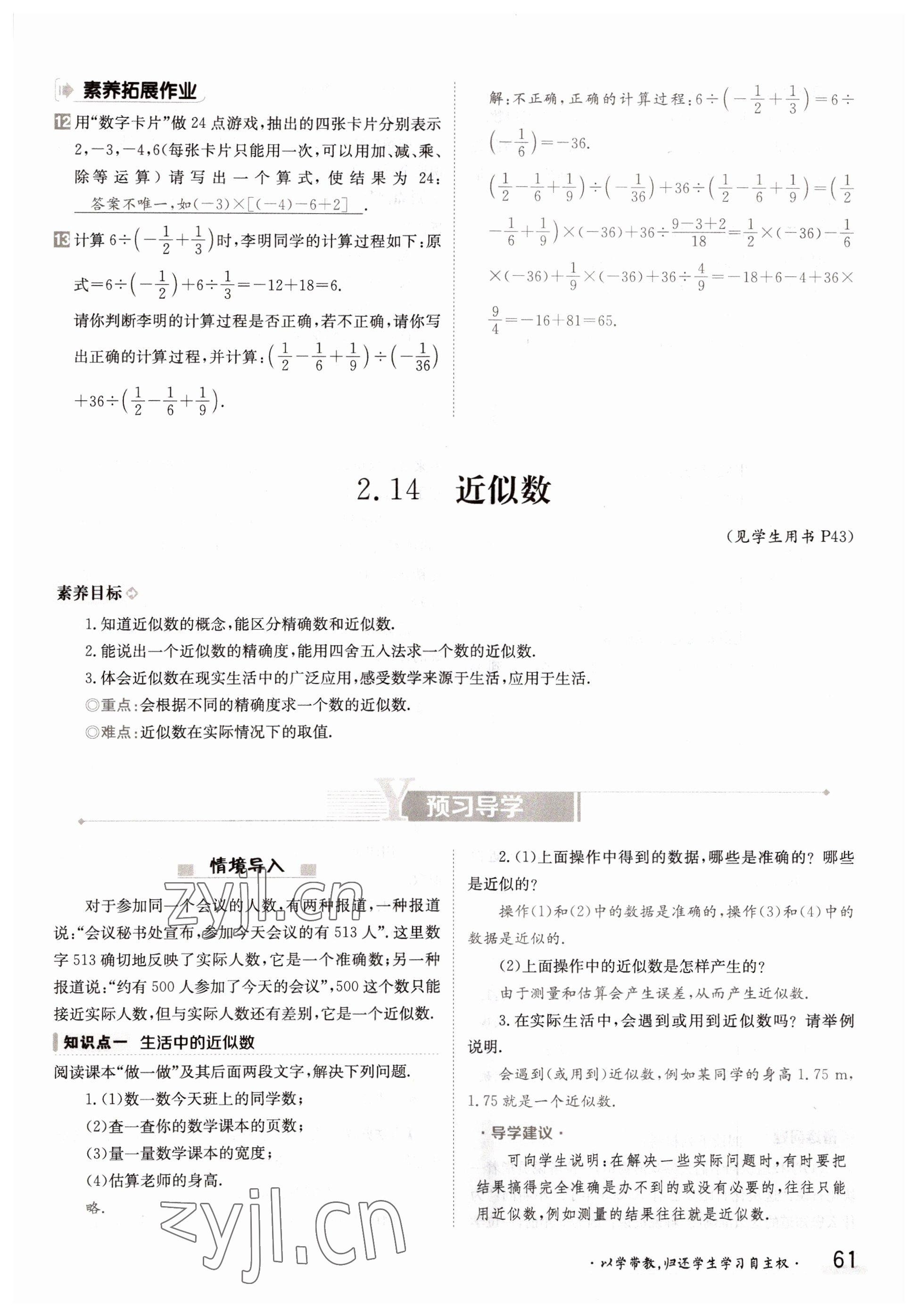 注:目前有些书本章节名称可能整理的还不是很完善,但都是按照顺序排列的,请同学们按照顺序仔细查找。练习册 2022年三段六步导学案七年级数学上册华师大版 答案主要是用来给同学们做完题方便对答案用的,请勿直接抄袭。