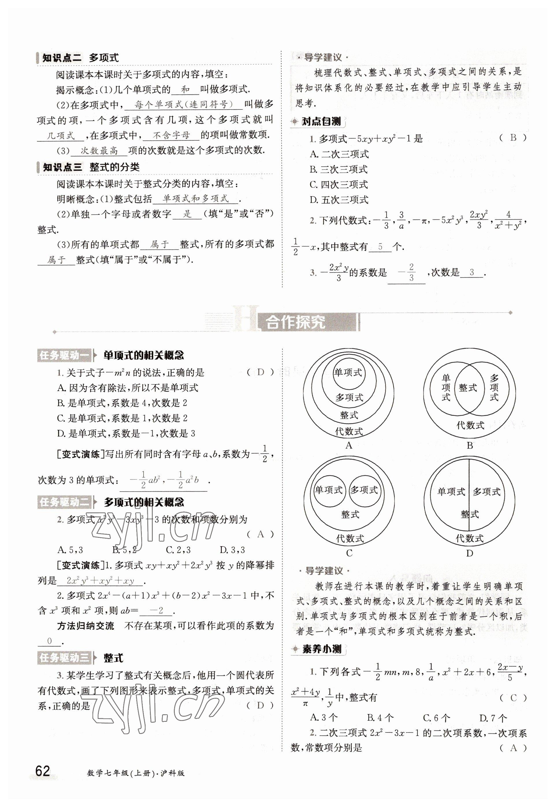 注:目前有些书本章节名称可能整理的还不是很完善,但都是按照顺序排列的,请同学们按照顺序仔细查找。练习册 2022年三段六步导学案七年级数学上册沪科版 答案主要是用来给同学们做完题方便对答案用的,请勿直接抄袭。