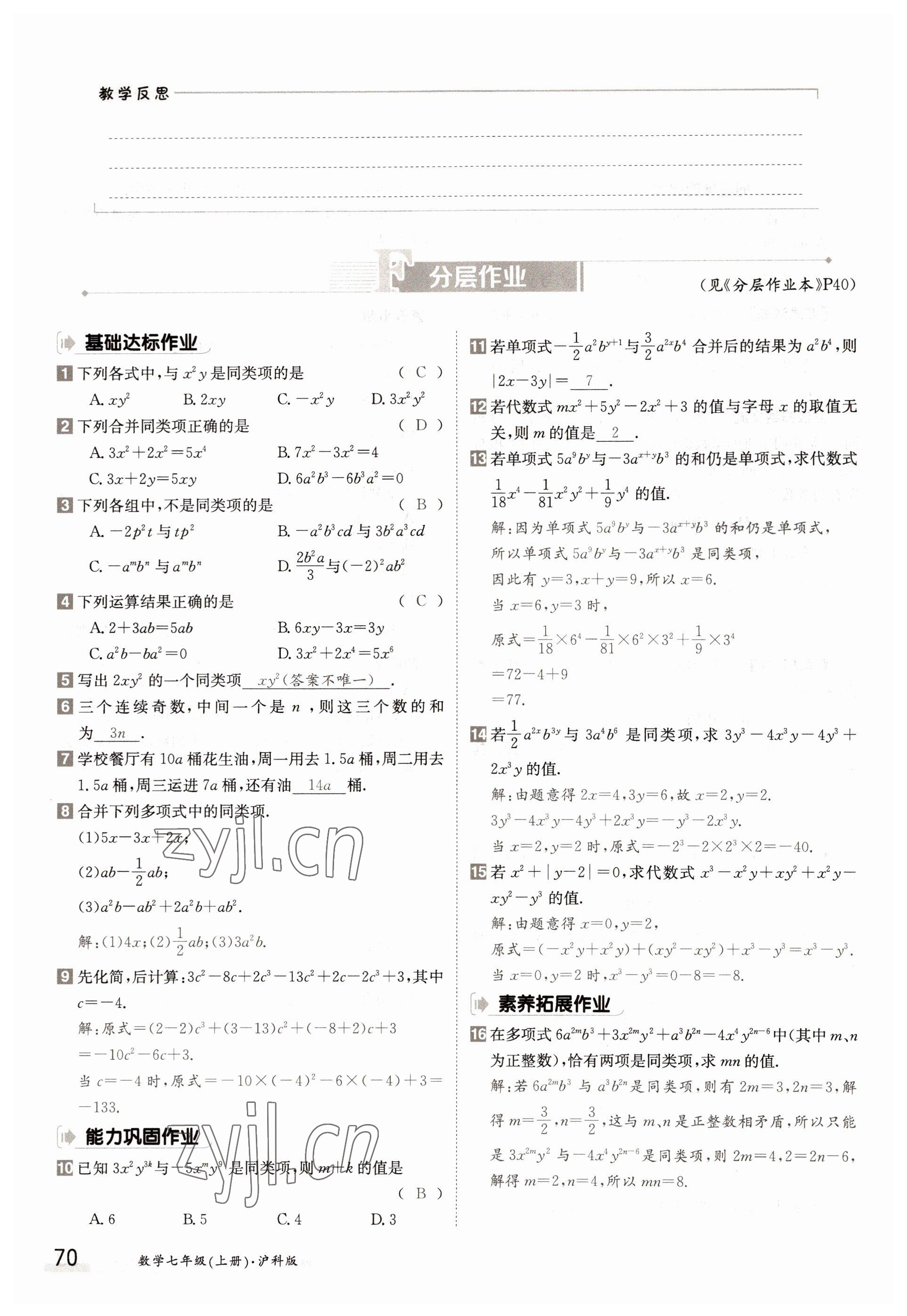 注:目前有些书本章节名称可能整理的还不是很完善,但都是按照顺序排列的,请同学们按照顺序仔细查找。练习册 2022年三段六步导学案七年级数学上册沪科版 答案主要是用来给同学们做完题方便对答案用的,请勿直接抄袭。