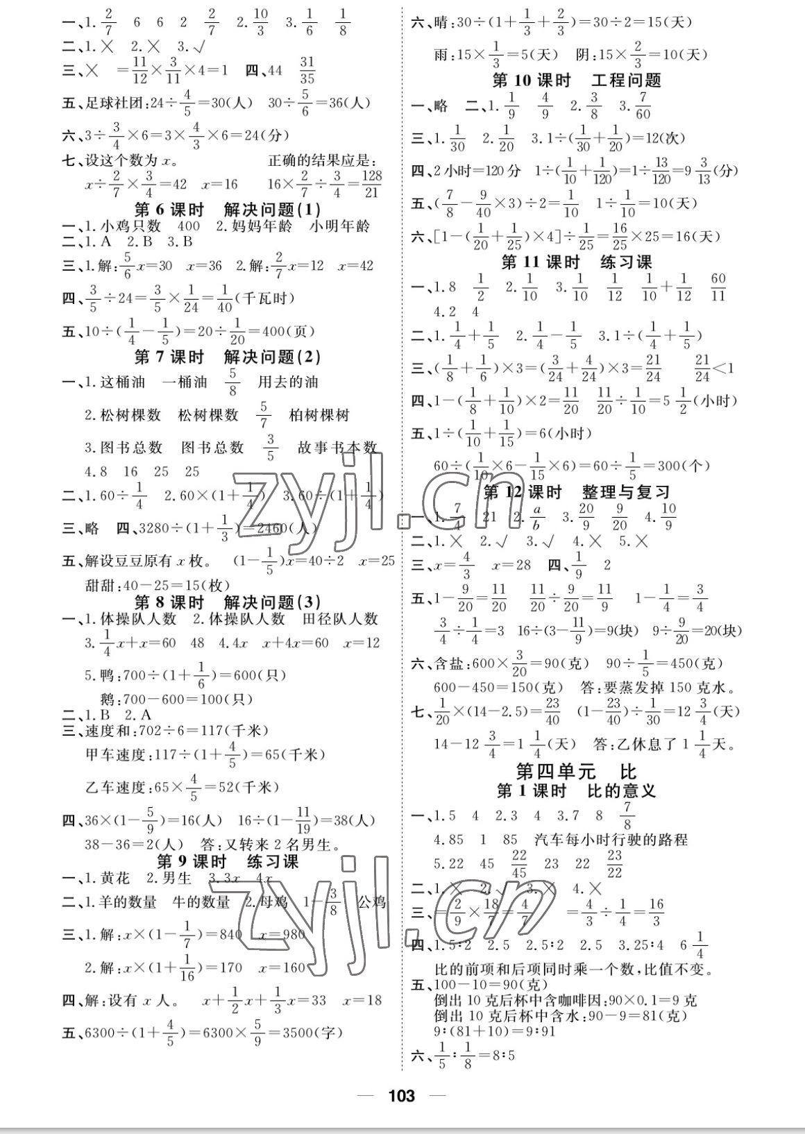 注:目前有些书本章节名称可能整理的还不是很完善,但都是按照顺序排列的,请同学们按照顺序仔细查找。练习册 2022年阳光通道六年级数学上册人教版 答案主要是用来给同学们做完题方便对答案用的,请勿直接抄袭。