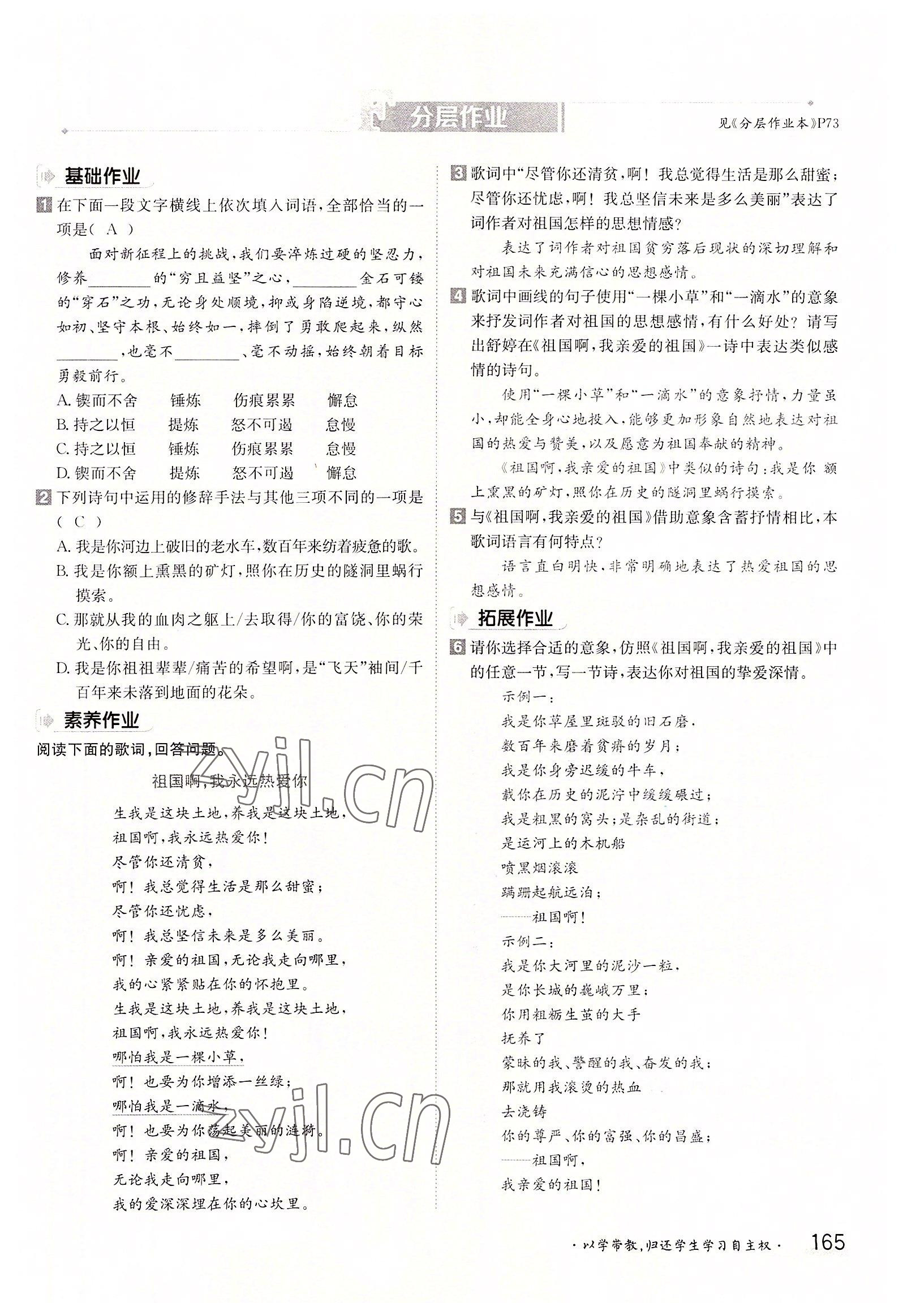 注:目前有些书本章节名称可能整理的还不是很完善,但都是按照顺序排列的,请同学们按照顺序仔细查找。练习册 2022年金太阳分层作业本九年级语文全一册人教版 答案主要是用来给同学们做完题方便对答案用的,请勿直接抄袭。