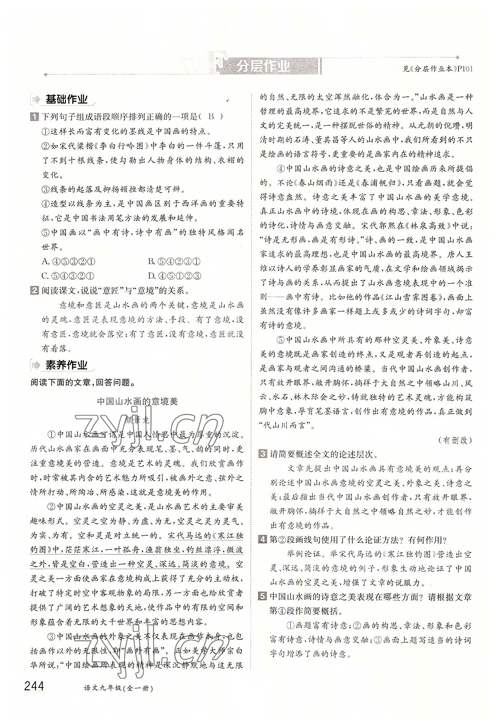 注:目前有些书本章节名称可能整理的还不是很完善,但都是按照顺序排列的,请同学们按照顺序仔细查找。练习册 2022年金太阳分层作业本九年级语文全一册人教版 答案主要是用来给同学们做完题方便对答案用的,请勿直接抄袭。