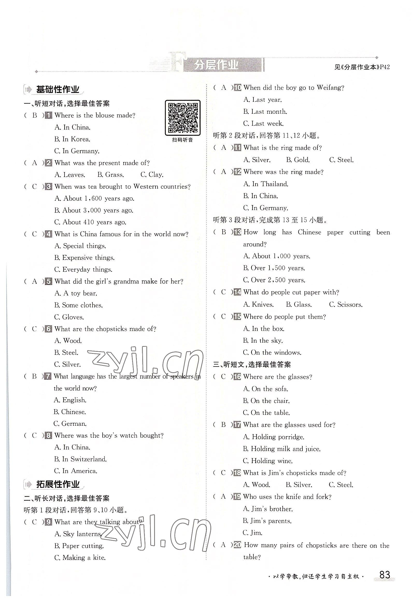 注:目前有些书本章节名称可能整理的还不是很完善,但都是按照顺序排列的,请同学们按照顺序仔细查找。练习册 2022年金太阳分层作业本九年级英语全一册人教版 答案主要是用来给同学们做完题方便对答案用的,请勿直接抄袭。