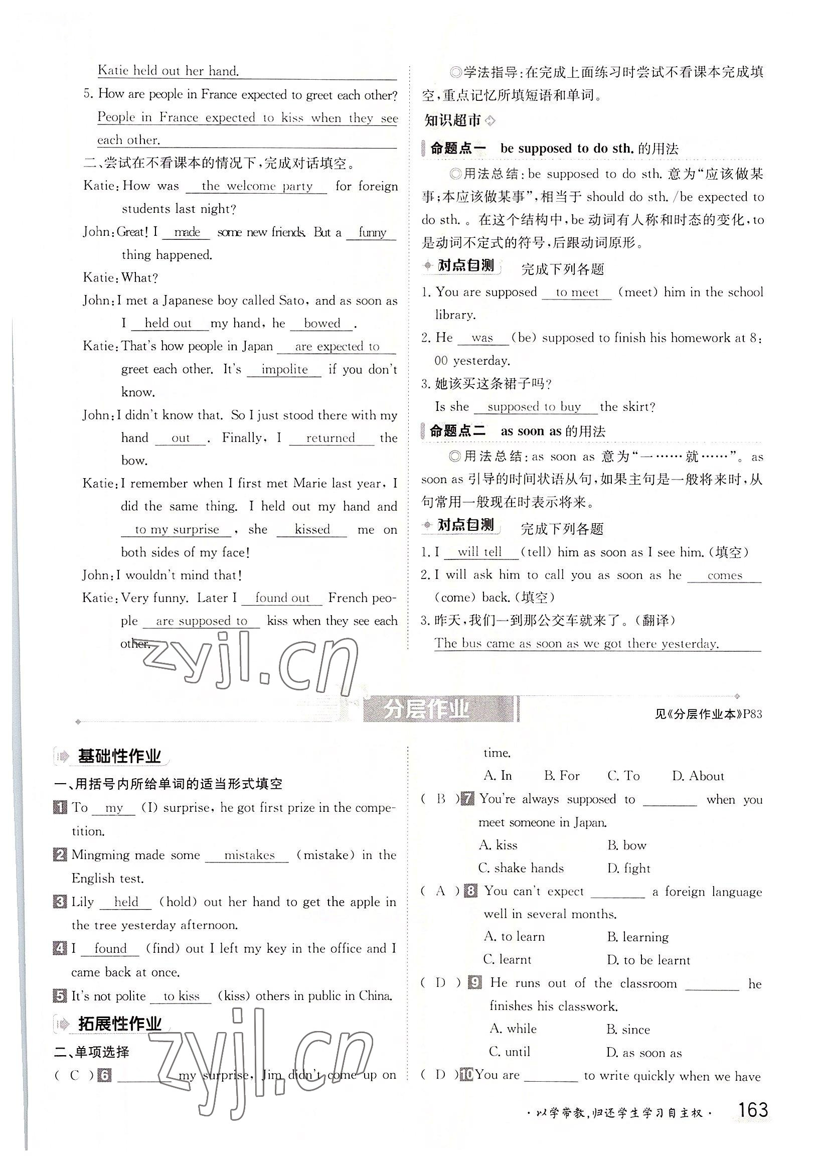 注:目前有些书本章节名称可能整理的还不是很完善,但都是按照顺序排列的,请同学们按照顺序仔细查找。练习册 2022年金太阳分层作业本九年级英语全一册人教版 答案主要是用来给同学们做完题方便对答案用的,请勿直接抄袭。