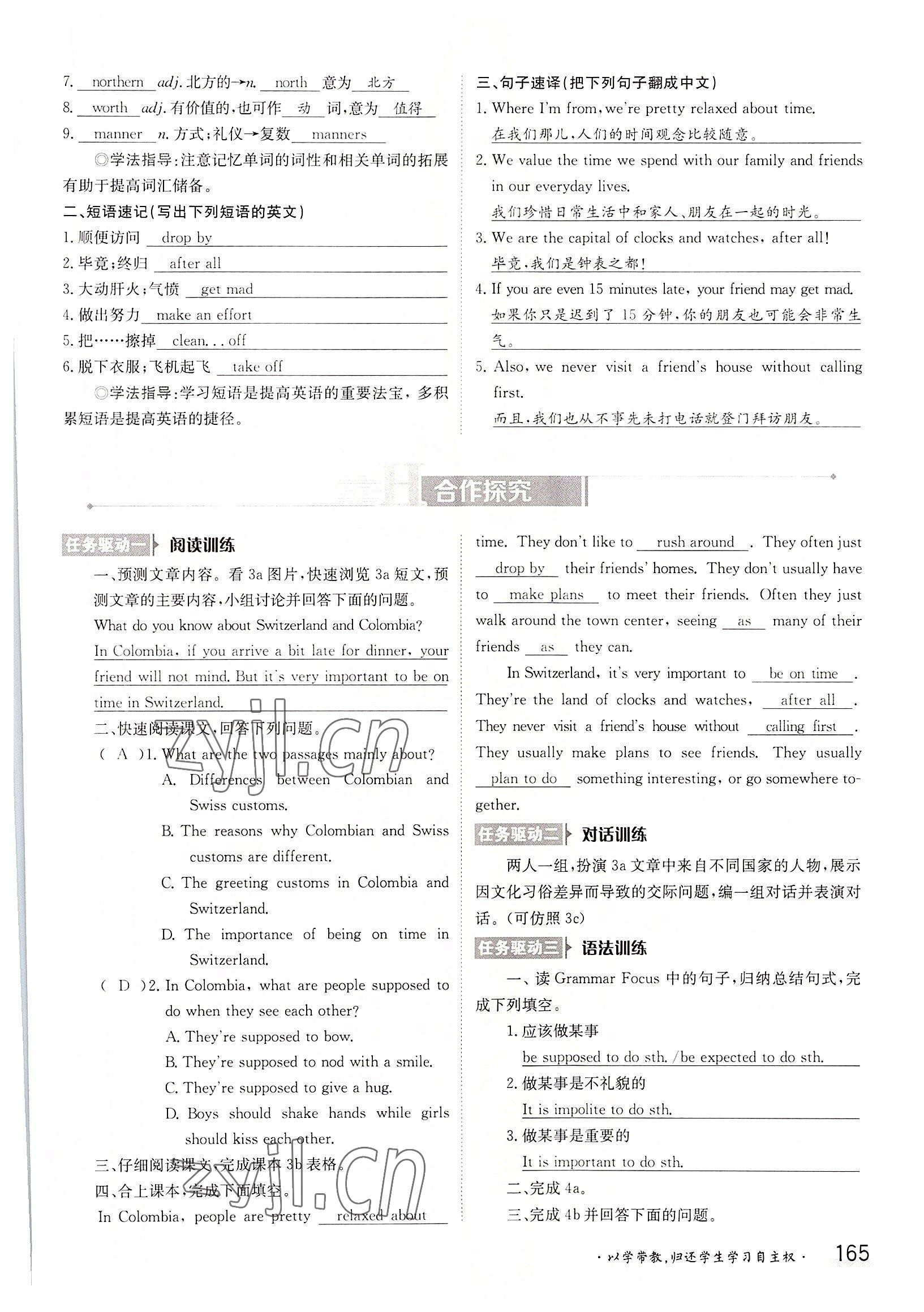 注:目前有些书本章节名称可能整理的还不是很完善,但都是按照顺序排列的,请同学们按照顺序仔细查找。练习册 2022年金太阳分层作业本九年级英语全一册人教版 答案主要是用来给同学们做完题方便对答案用的,请勿直接抄袭。