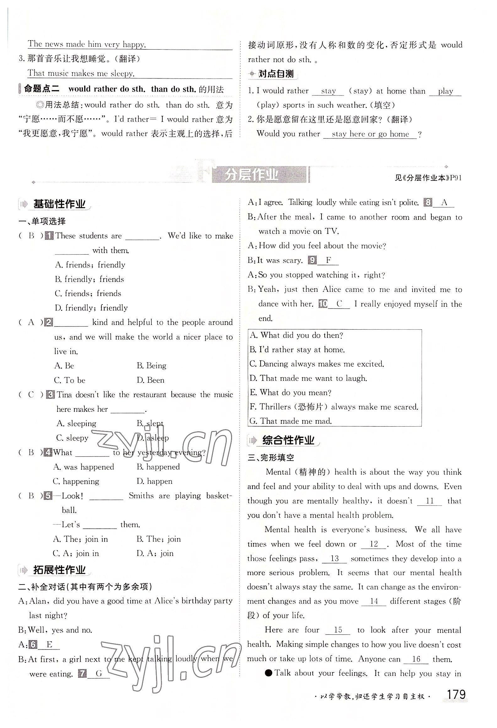 注:目前有些书本章节名称可能整理的还不是很完善,但都是按照顺序排列的,请同学们按照顺序仔细查找。练习册 2022年金太阳分层作业本九年级英语全一册人教版 答案主要是用来给同学们做完题方便对答案用的,请勿直接抄袭。