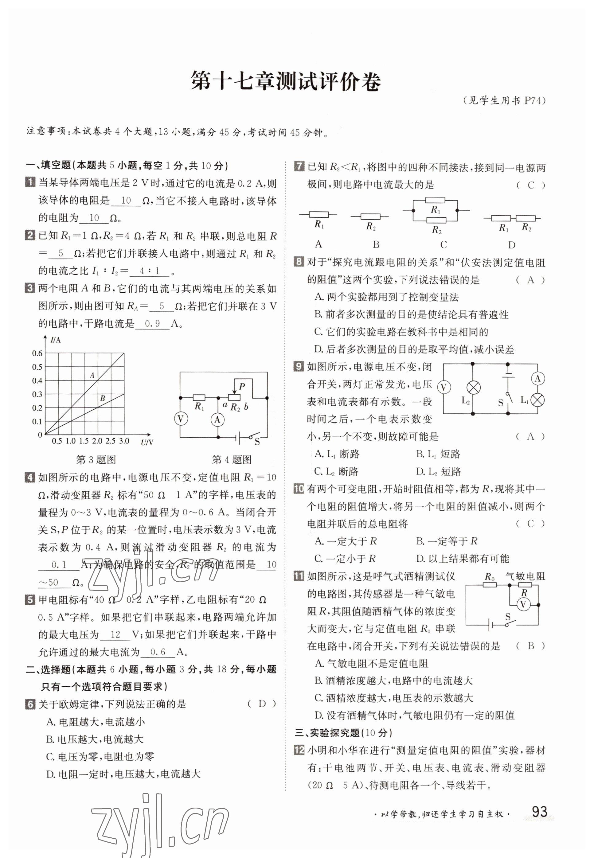 注:目前有些书本章节名称可能整理的还不是很完善,但都是按照顺序排列的,请同学们按照顺序仔细查找。练习册 2022年金太阳分层作业本九年级物理全一册人教版 答案主要是用来给同学们做完题方便对答案用的,请勿直接抄袭。