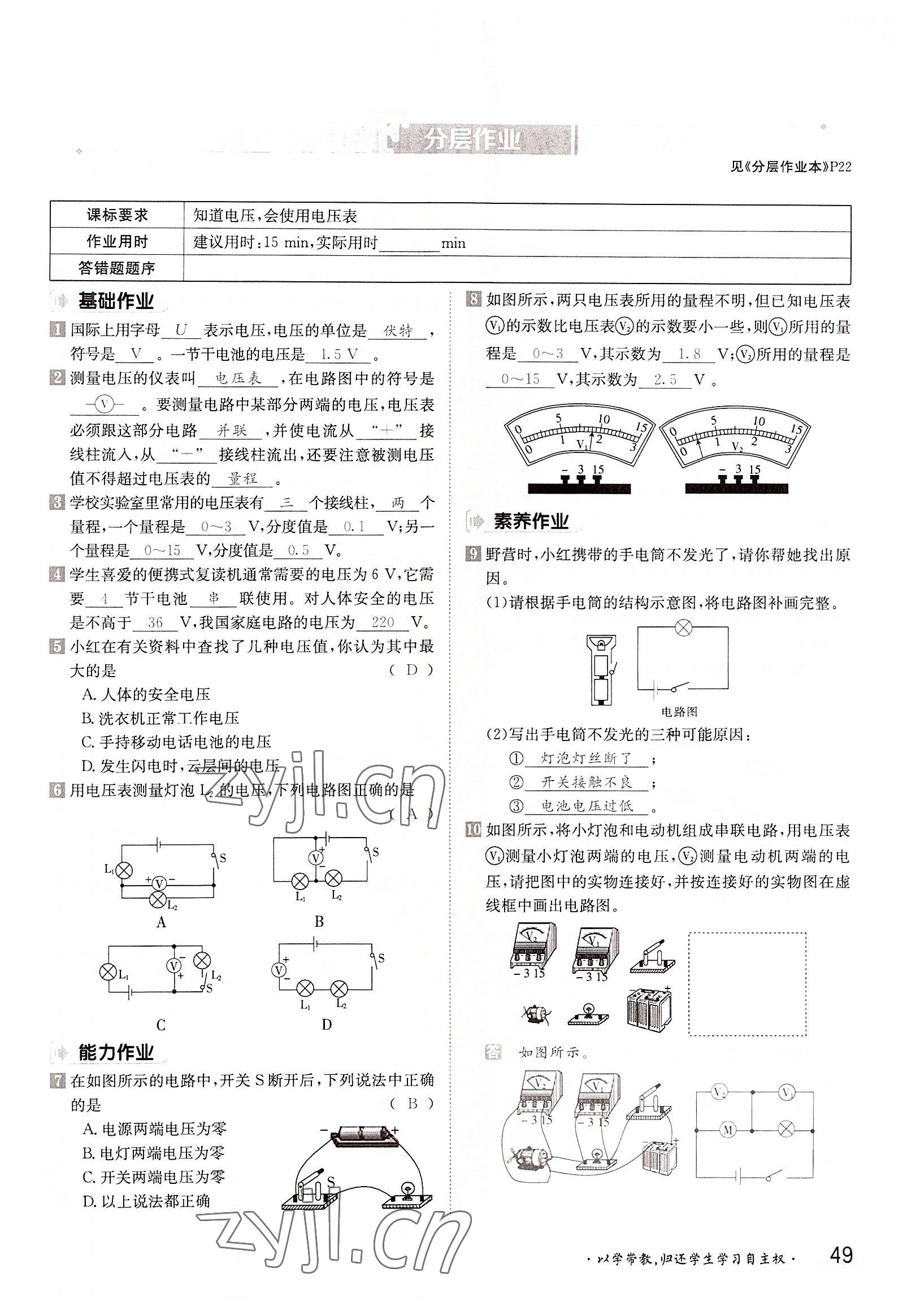注:目前有些书本章节名称可能整理的还不是很完善,但都是按照顺序排列的,请同学们按照顺序仔细查找。练习册 2022年金太阳分层作业本九年级物理全一册沪粤版 答案主要是用来给同学们做完题方便对答案用的,请勿直接抄袭。