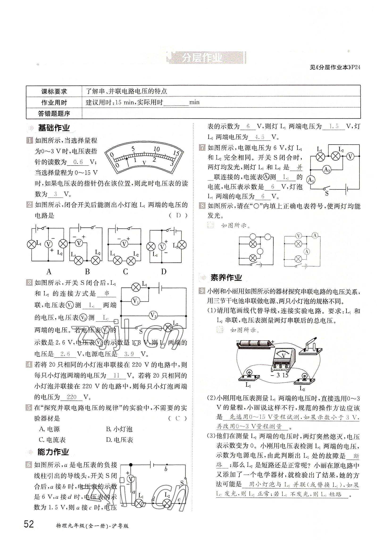 注:目前有些书本章节名称可能整理的还不是很完善,但都是按照顺序排列的,请同学们按照顺序仔细查找。练习册 2022年金太阳分层作业本九年级物理全一册沪粤版 答案主要是用来给同学们做完题方便对答案用的,请勿直接抄袭。