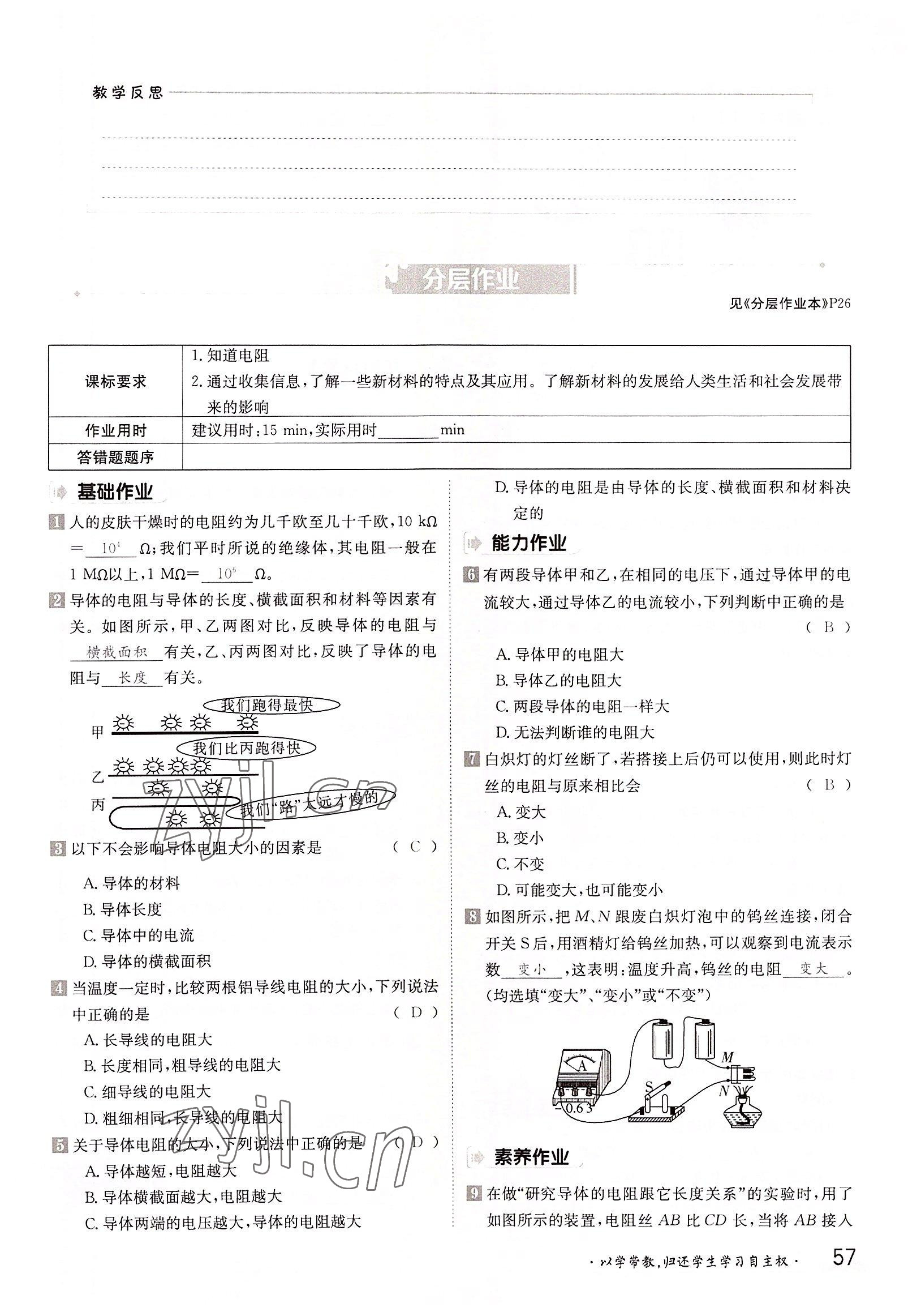 注:目前有些书本章节名称可能整理的还不是很完善,但都是按照顺序排列的,请同学们按照顺序仔细查找。练习册 2022年金太阳分层作业本九年级物理全一册沪粤版 答案主要是用来给同学们做完题方便对答案用的,请勿直接抄袭。