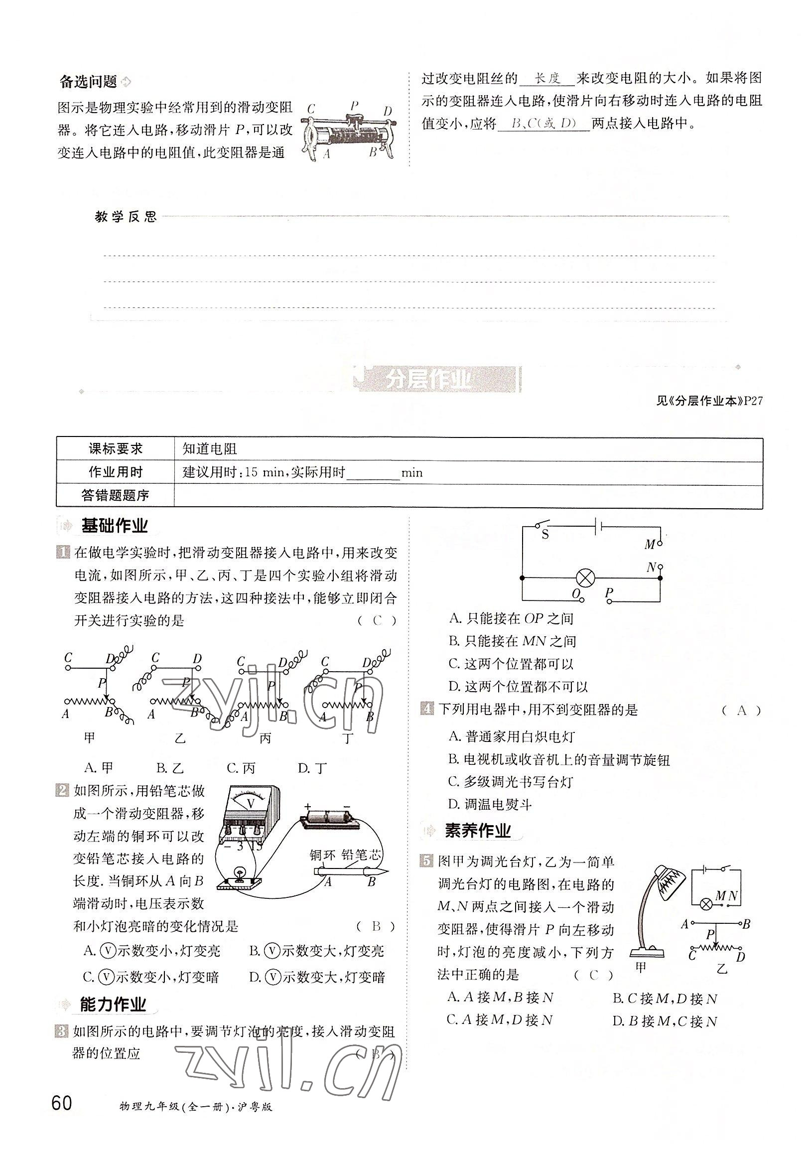 注:目前有些书本章节名称可能整理的还不是很完善,但都是按照顺序排列的,请同学们按照顺序仔细查找。练习册 2022年金太阳分层作业本九年级物理全一册沪粤版 答案主要是用来给同学们做完题方便对答案用的,请勿直接抄袭。