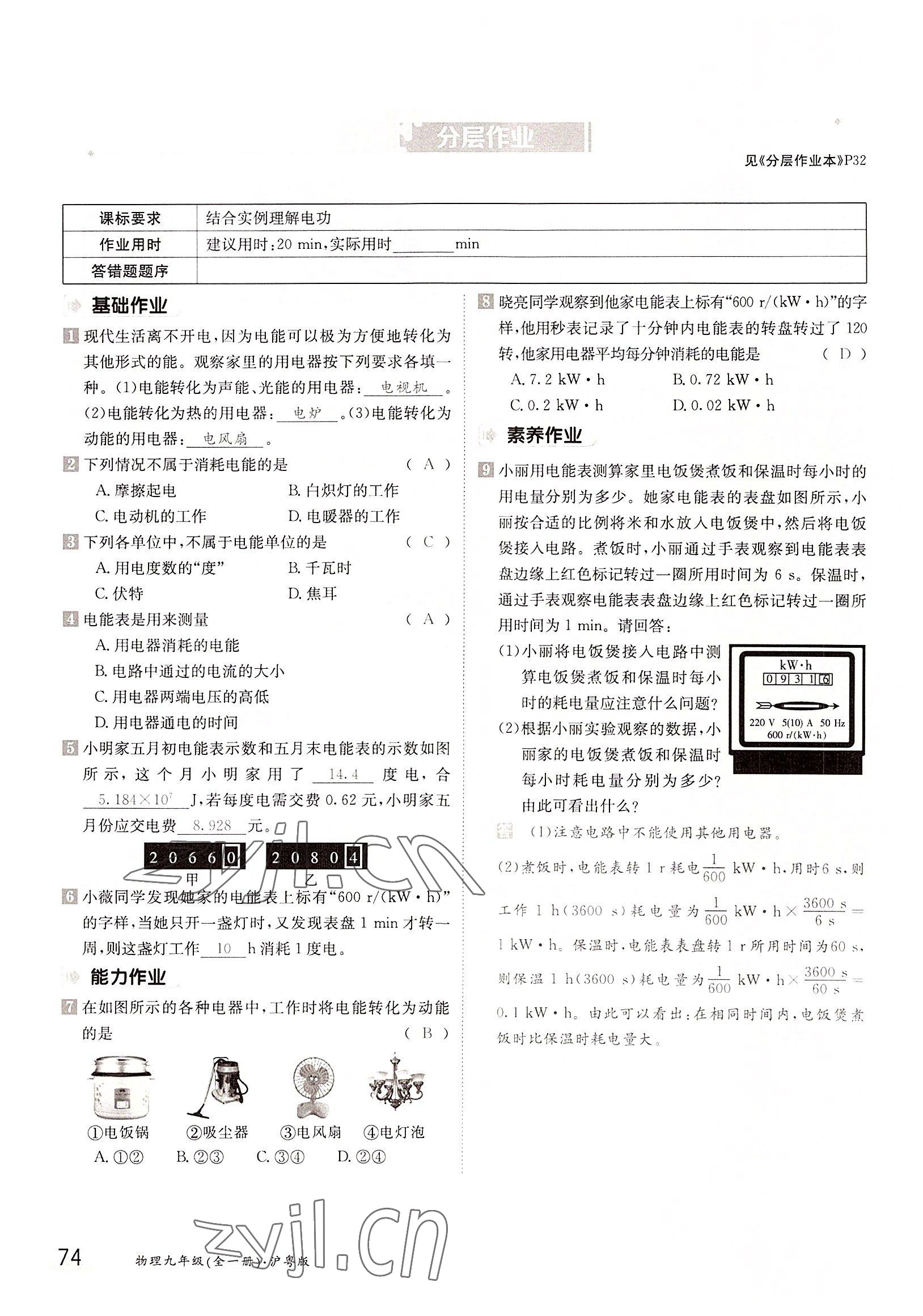 注:目前有些书本章节名称可能整理的还不是很完善,但都是按照顺序排列的,请同学们按照顺序仔细查找。练习册 2022年金太阳分层作业本九年级物理全一册沪粤版 答案主要是用来给同学们做完题方便对答案用的,请勿直接抄袭。
