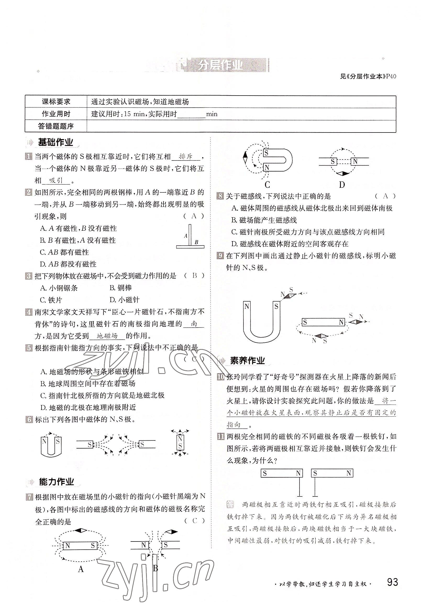 注:目前有些书本章节名称可能整理的还不是很完善,但都是按照顺序排列的,请同学们按照顺序仔细查找。练习册 2022年金太阳分层作业本九年级物理全一册沪粤版 答案主要是用来给同学们做完题方便对答案用的,请勿直接抄袭。
