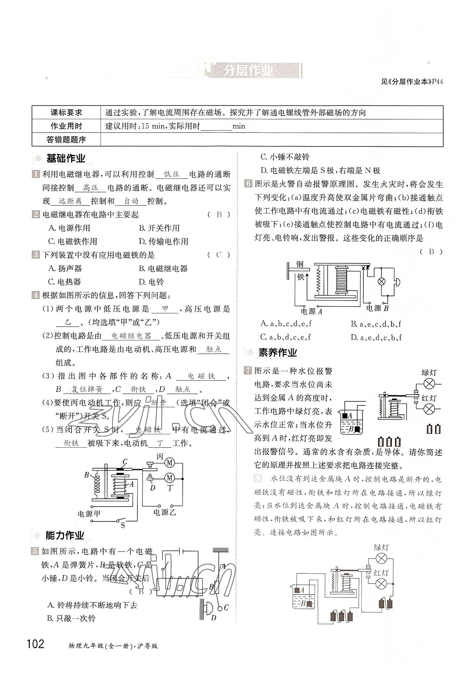 注:目前有些书本章节名称可能整理的还不是很完善,但都是按照顺序排列的,请同学们按照顺序仔细查找。练习册 2022年金太阳分层作业本九年级物理全一册沪粤版 答案主要是用来给同学们做完题方便对答案用的,请勿直接抄袭。