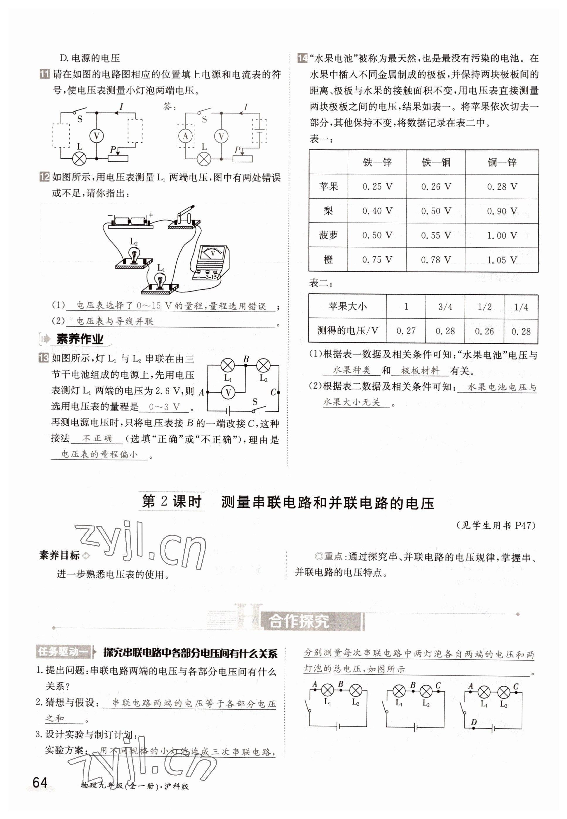 注:目前有些书本章节名称可能整理的还不是很完善,但都是按照顺序排列的,请同学们按照顺序仔细查找。练习册 2022年金太阳分层作业本九年级物理全一册沪科版 答案主要是用来给同学们做完题方便对答案用的,请勿直接抄袭。
