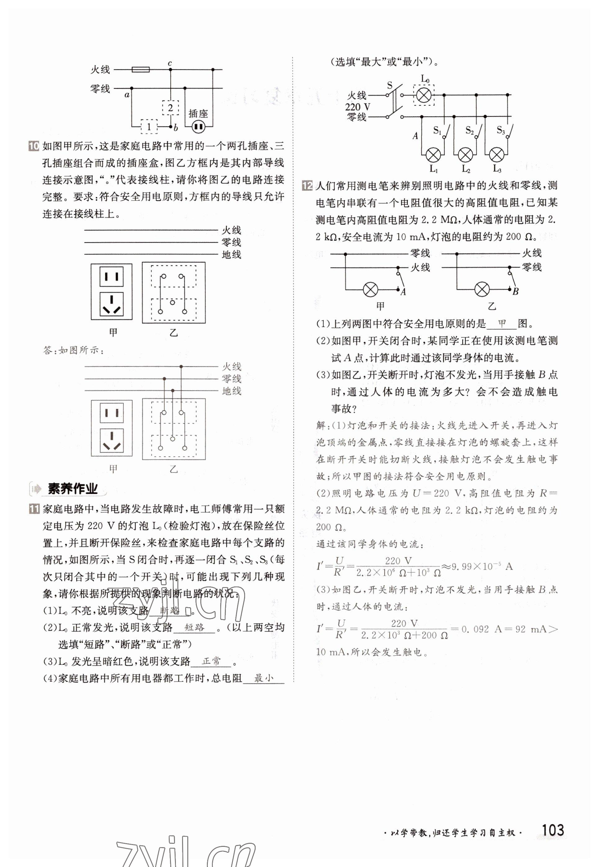 2022年金太阳分层作业本九年级物理全一册沪科版