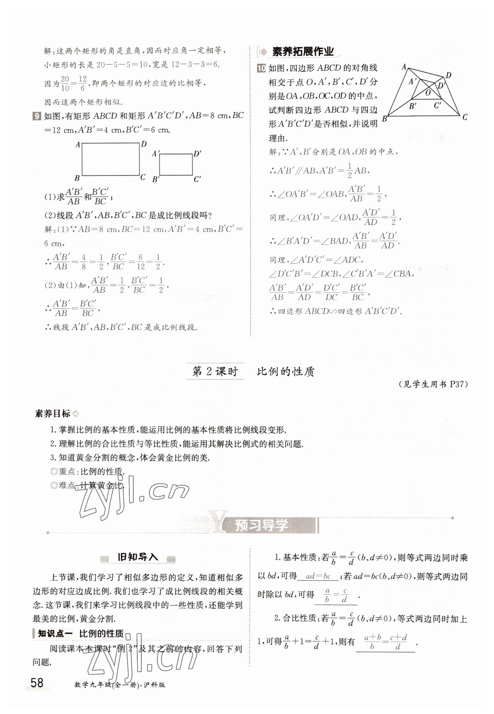 2022年金太阳分层作业本九年级数学全一册沪科版