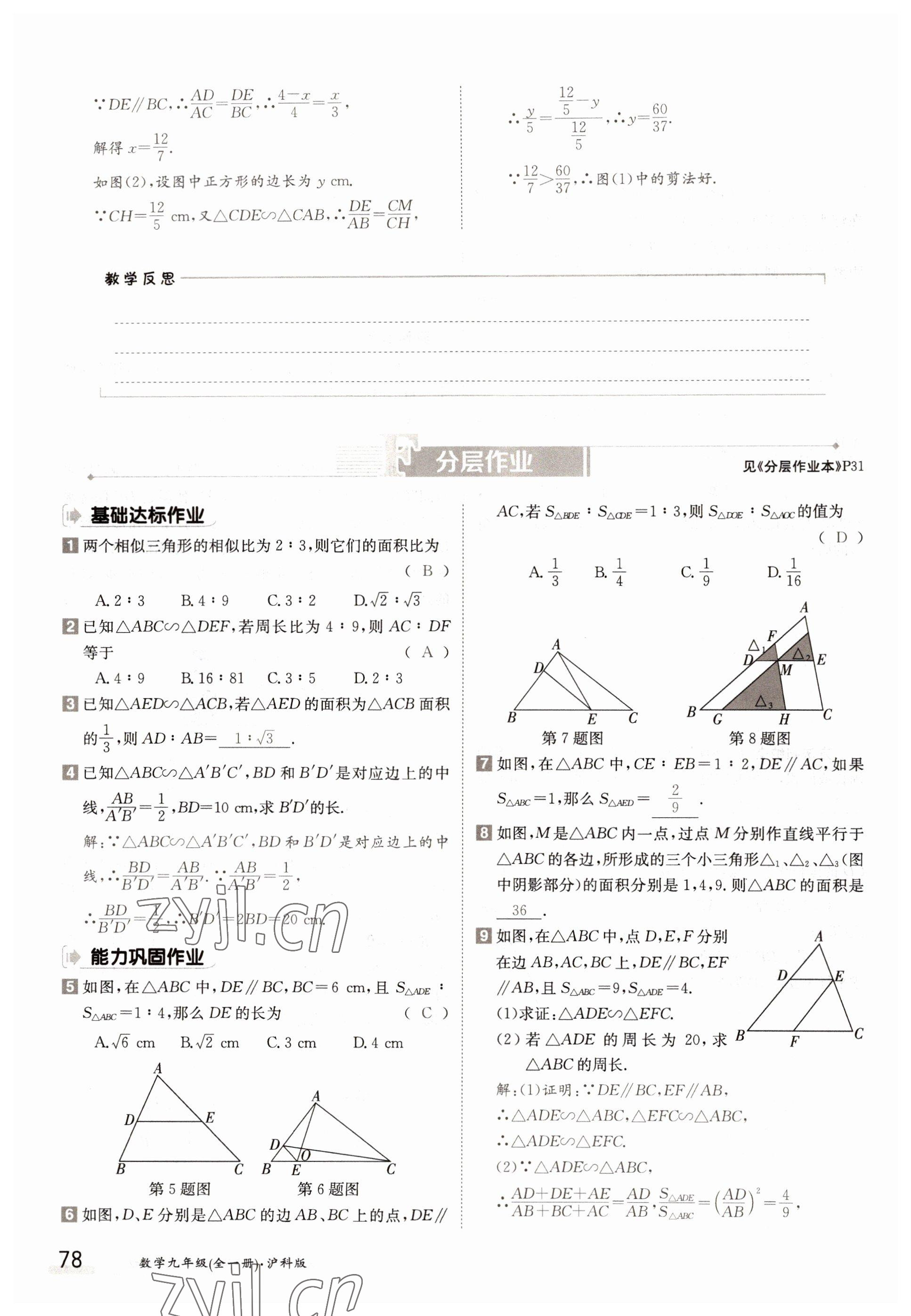 注:目前有些书本章节名称可能整理的还不是很完善,但都是按照顺序排列的,请同学们按照顺序仔细查找。练习册 2022年金太阳分层作业本九年级数学全一册沪科版 答案主要是用来给同学们做完题方便对答案用的,请勿直接抄袭。