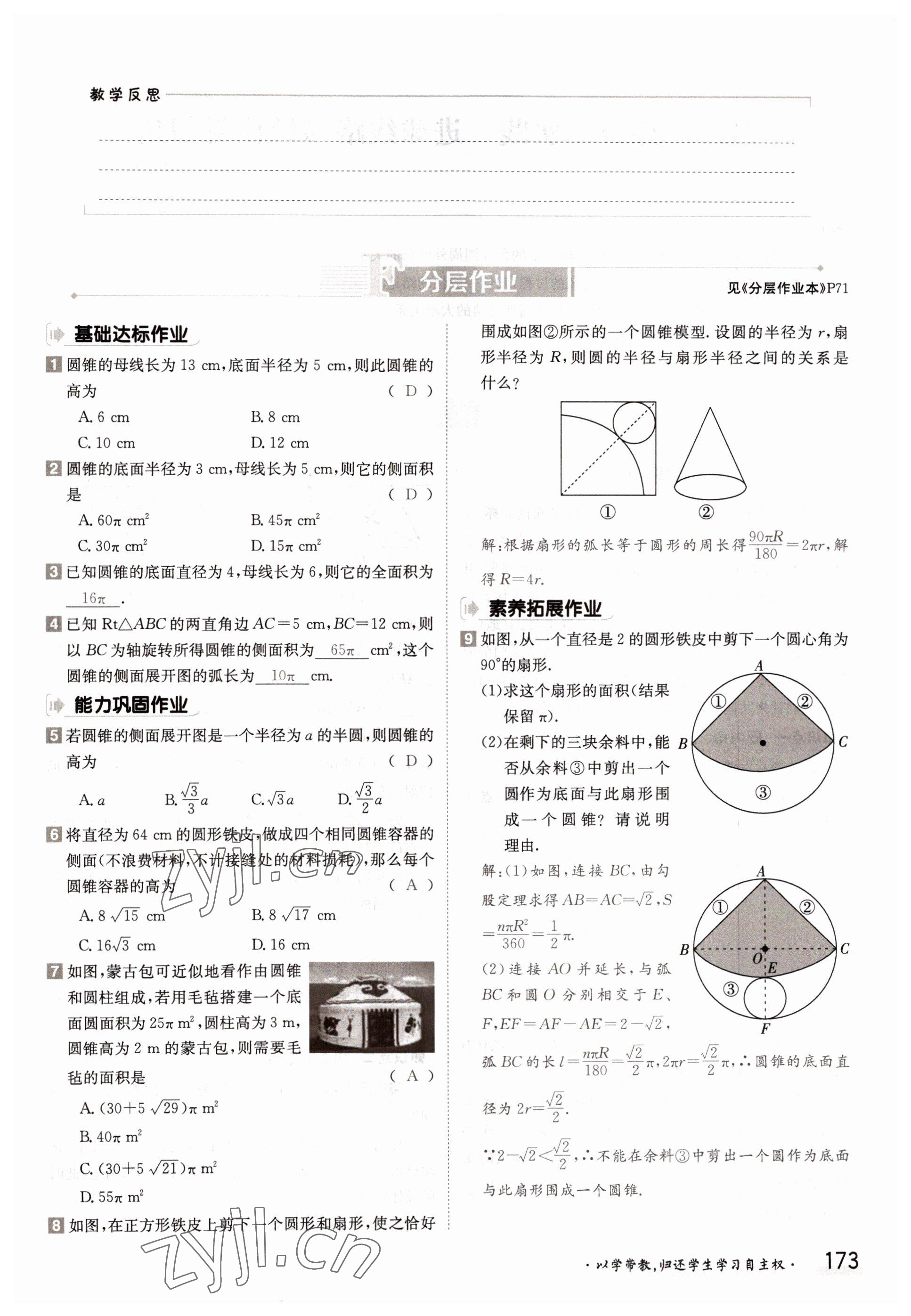 2022年金太阳分层作业本九年级数学全一册沪科版