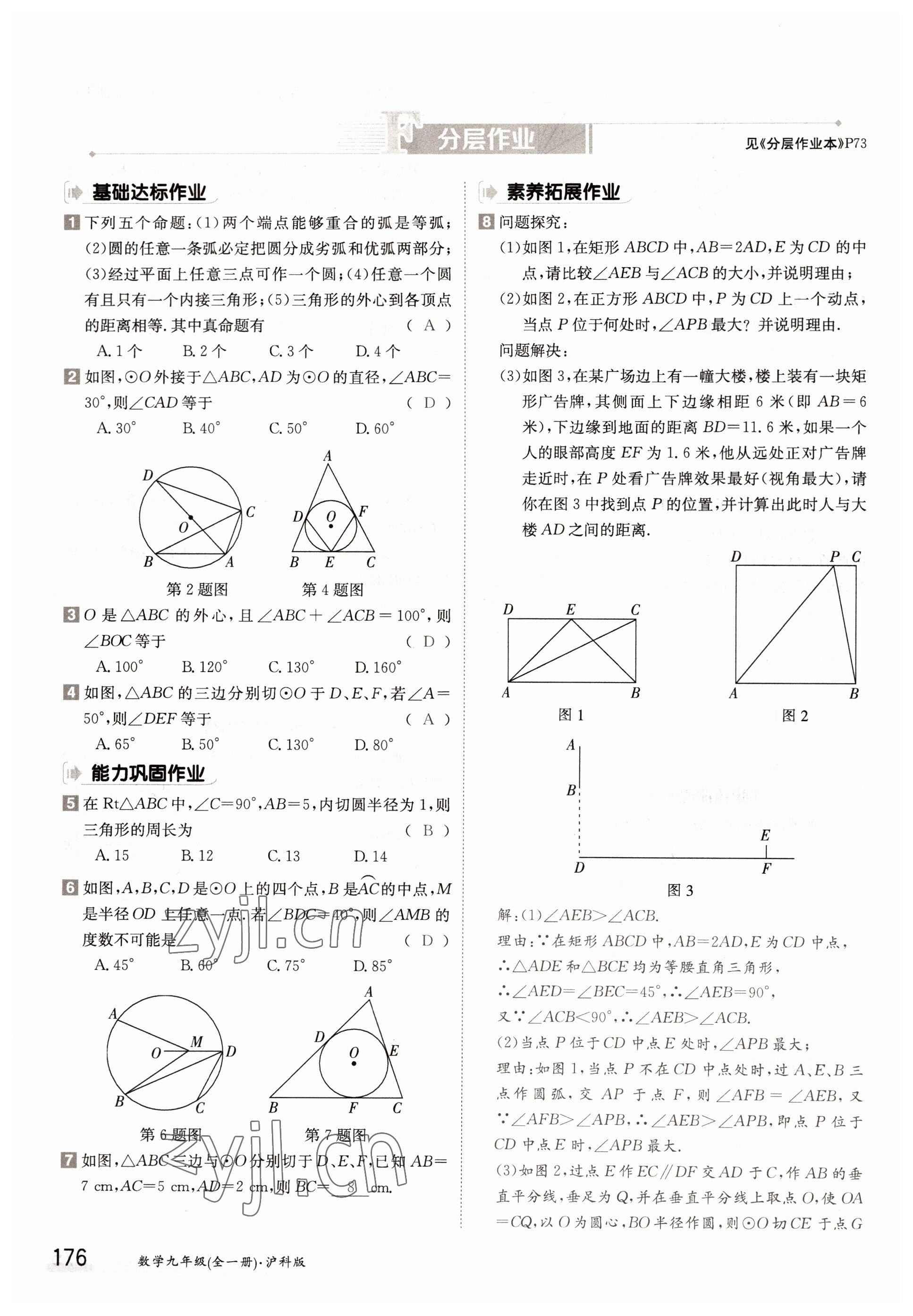 2022年金太阳分层作业本九年级数学全一册沪科版