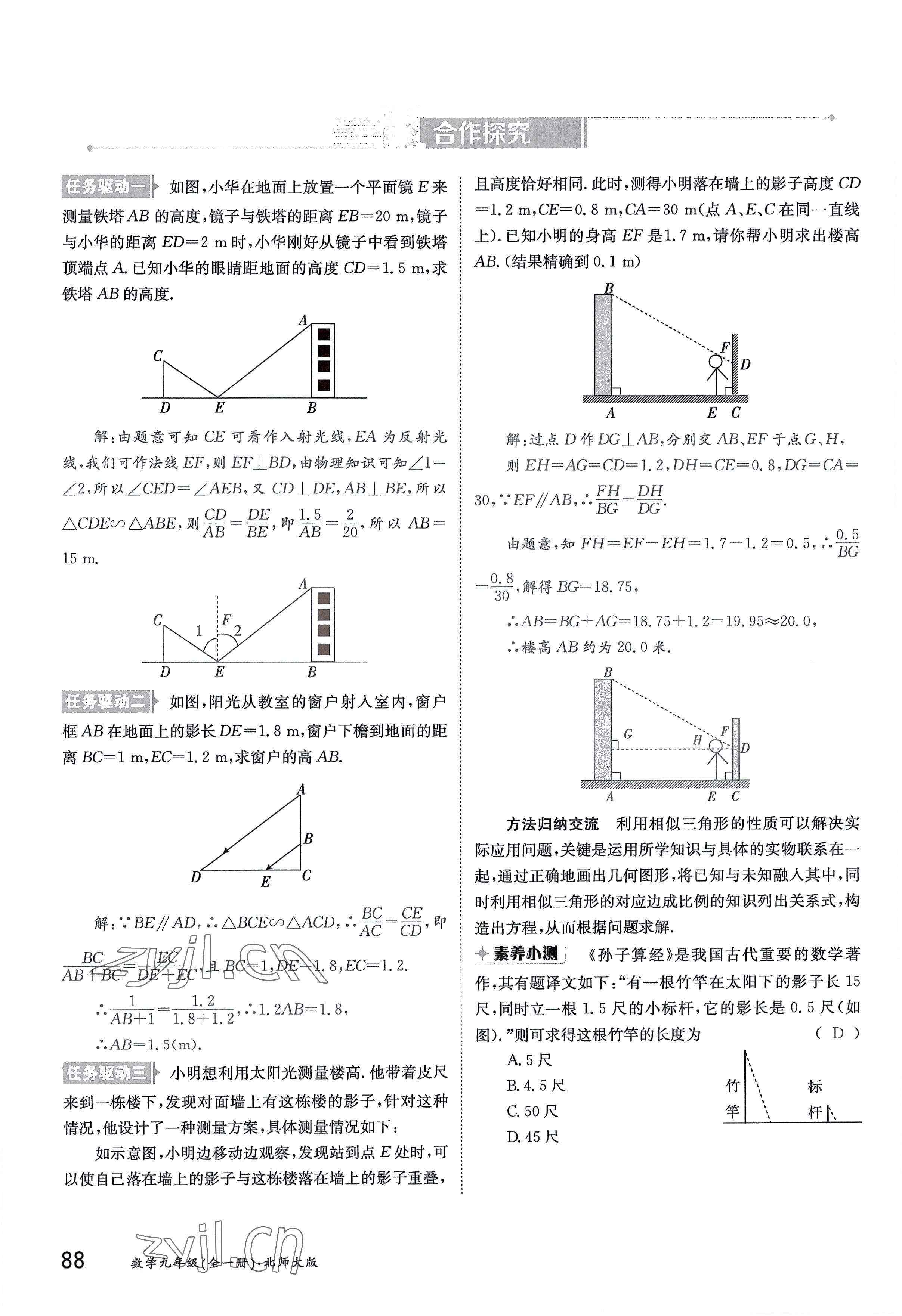 注:目前有些书本章节名称可能整理的还不是很完善,但都是按照顺序排列的,请同学们按照顺序仔细查找。练习册 2022年金太阳分层作业本九年级数学全一册北师大版 答案主要是用来给同学们做完题方便对答案用的,请勿直接抄袭。