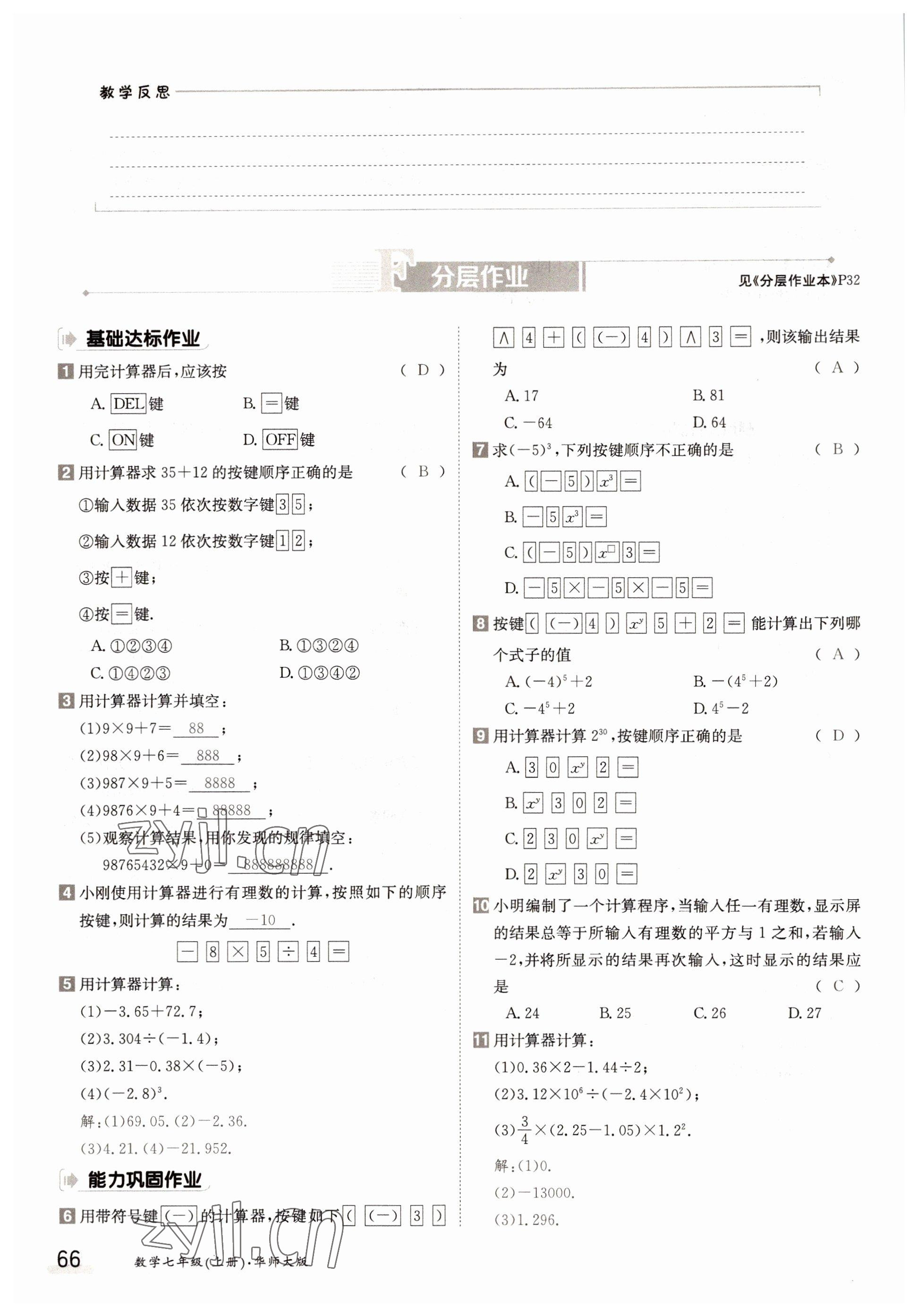- 参考答案第66页