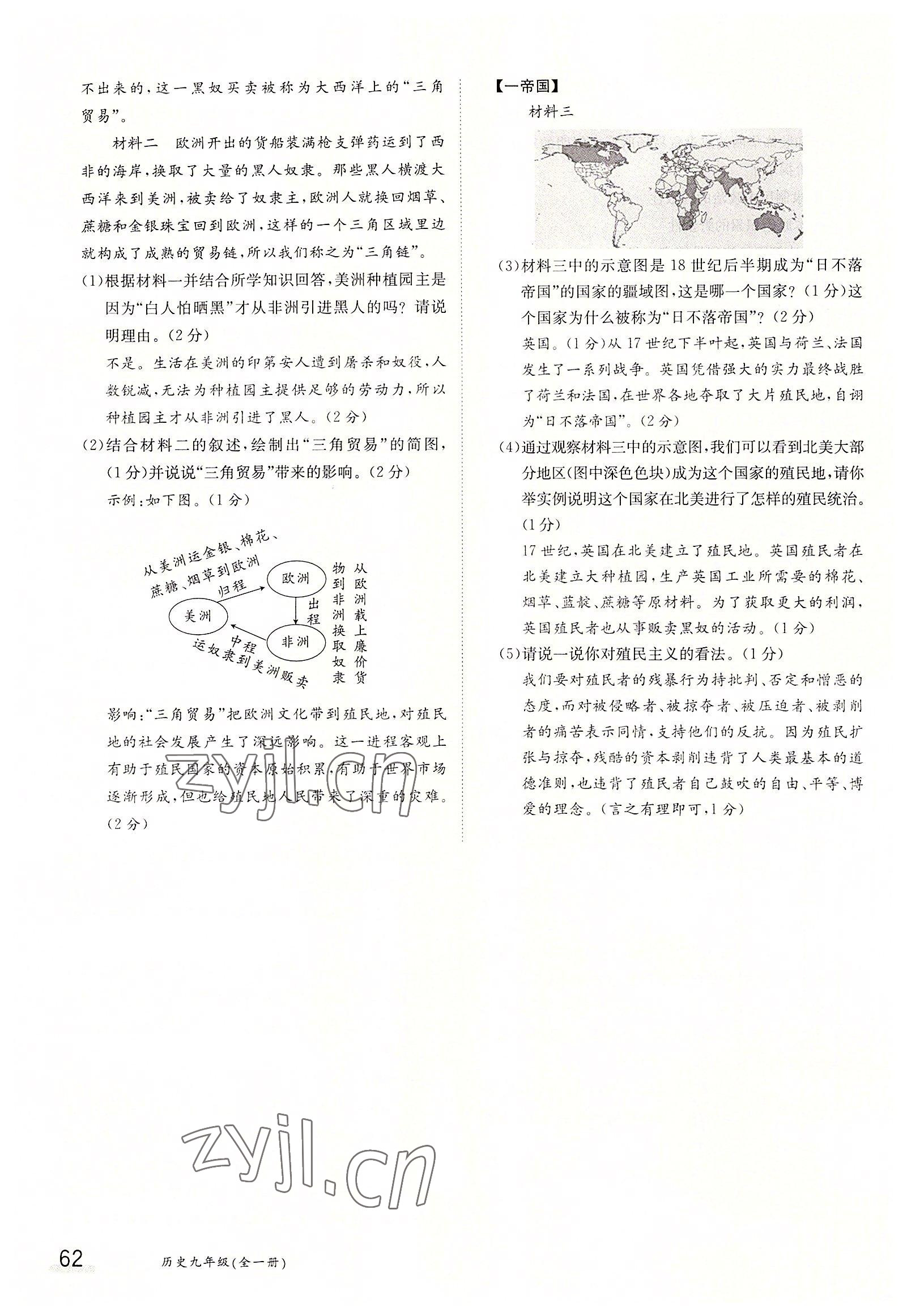 2022年金太阳分层作业本九年级历史全一册人教版
