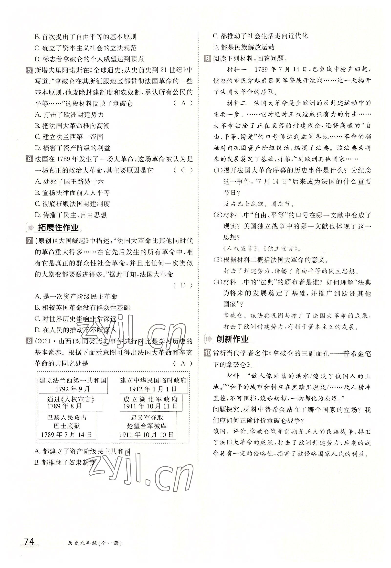 注:目前有些书本章节名称可能整理的还不是很完善,但都是按照顺序排列的,请同学们按照顺序仔细查找。练习册 2022年金太阳分层作业本九年级历史全一册人教版 答案主要是用来给同学们做完题方便对答案用的,请勿直接抄袭。