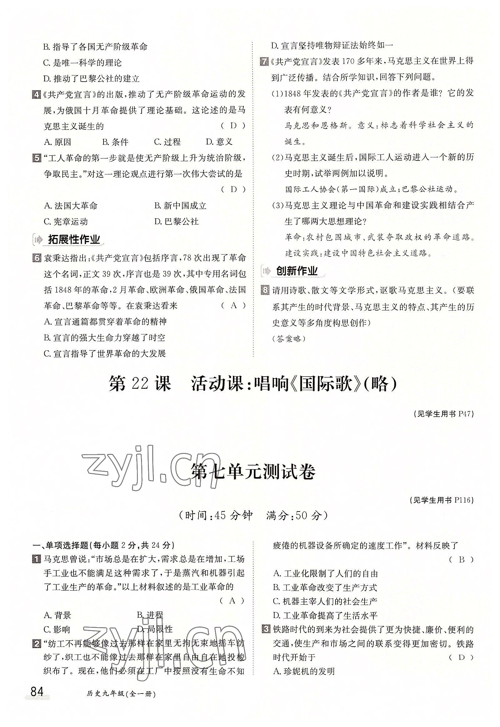 注:目前有些书本章节名称可能整理的还不是很完善,但都是按照顺序排列的,请同学们按照顺序仔细查找。练习册 2022年金太阳分层作业本九年级历史全一册人教版 答案主要是用来给同学们做完题方便对答案用的,请勿直接抄袭。