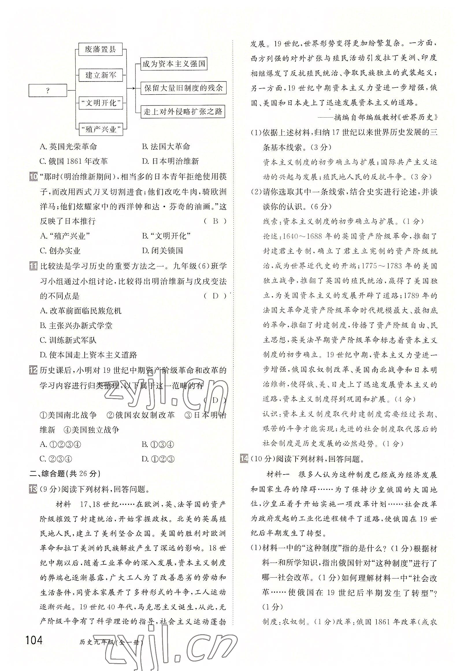 注:目前有些书本章节名称可能整理的还不是很完善,但都是按照顺序排列的,请同学们按照顺序仔细查找。练习册 2022年金太阳分层作业本九年级历史全一册人教版 答案主要是用来给同学们做完题方便对答案用的,请勿直接抄袭。