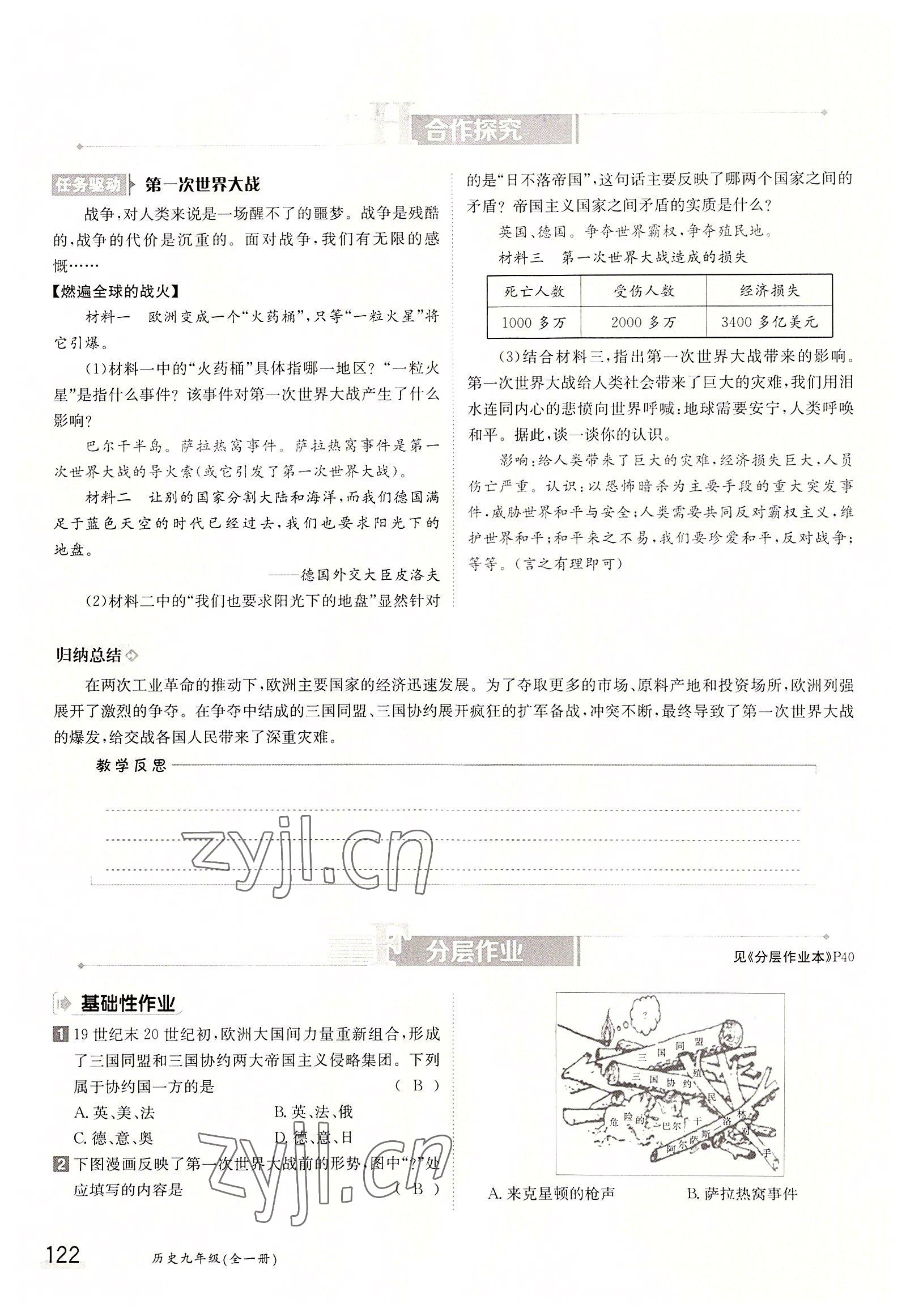 2022年金太阳分层作业本九年级历史全一册人教版