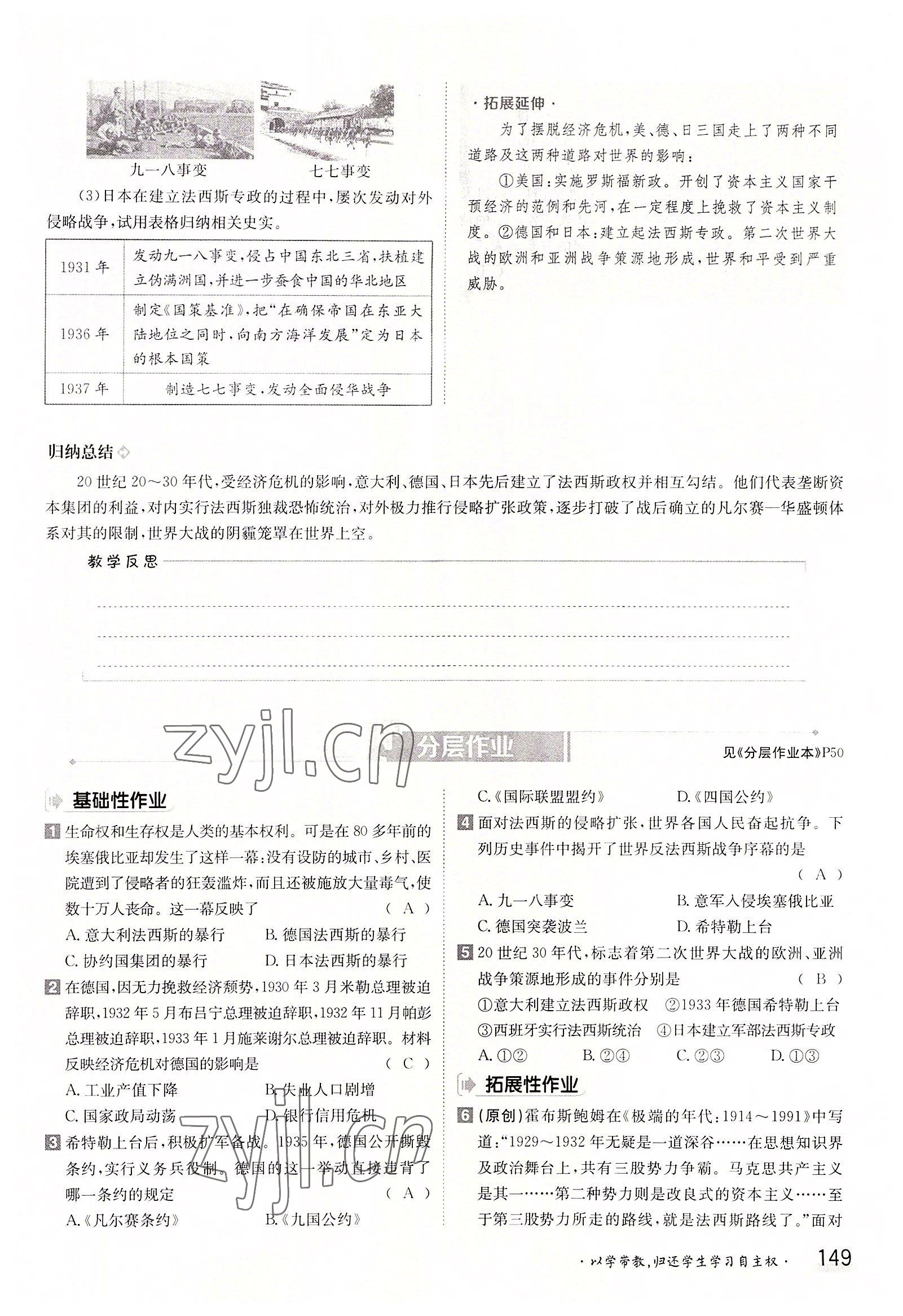 2022年金太阳分层作业本九年级历史全一册人教版