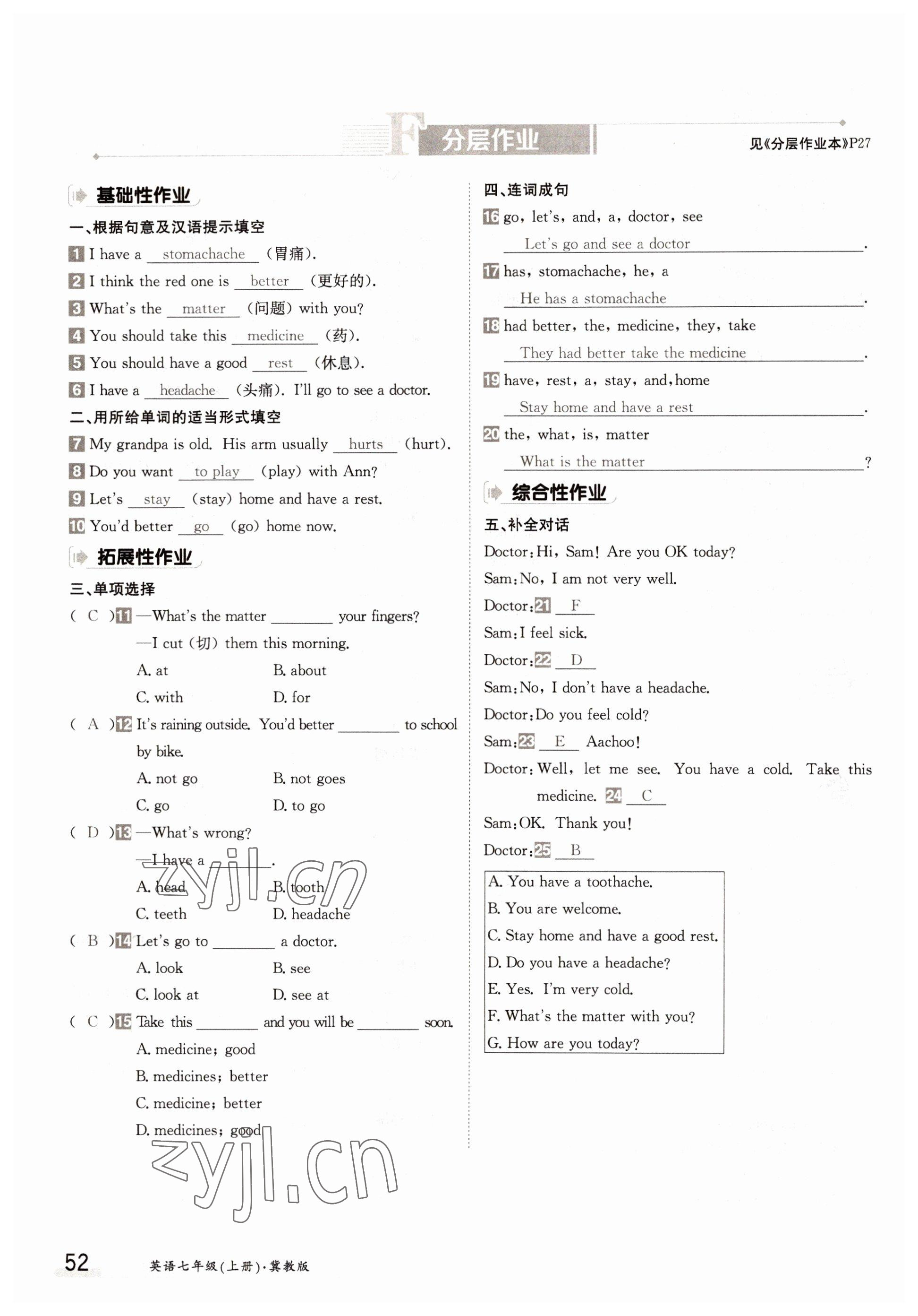 注:目前有些书本章节名称可能整理的还不是很完善,但都是按照顺序排列的,请同学们按照顺序仔细查找。练习册 2022年三段六步导学测评七年级英语上册冀教版 答案主要是用来给同学们做完题方便对答案用的,请勿直接抄袭。