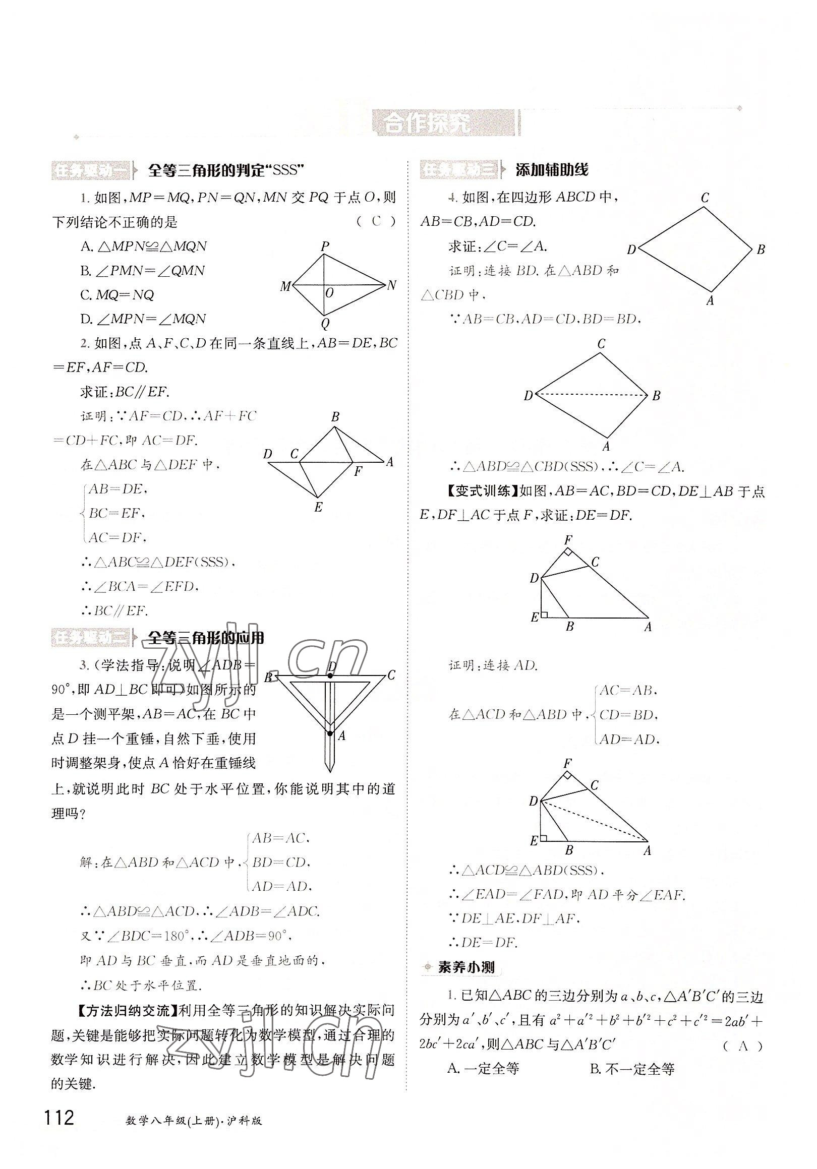 注:目前有些书本章节名称可能整理的还不是很完善,但都是按照顺序排列的,请同学们按照顺序仔细查找。练习册 2022年三段六步导学测评八年级数学上册沪科版 答案主要是用来给同学们做完题方便对答案用的,请勿直接抄袭。