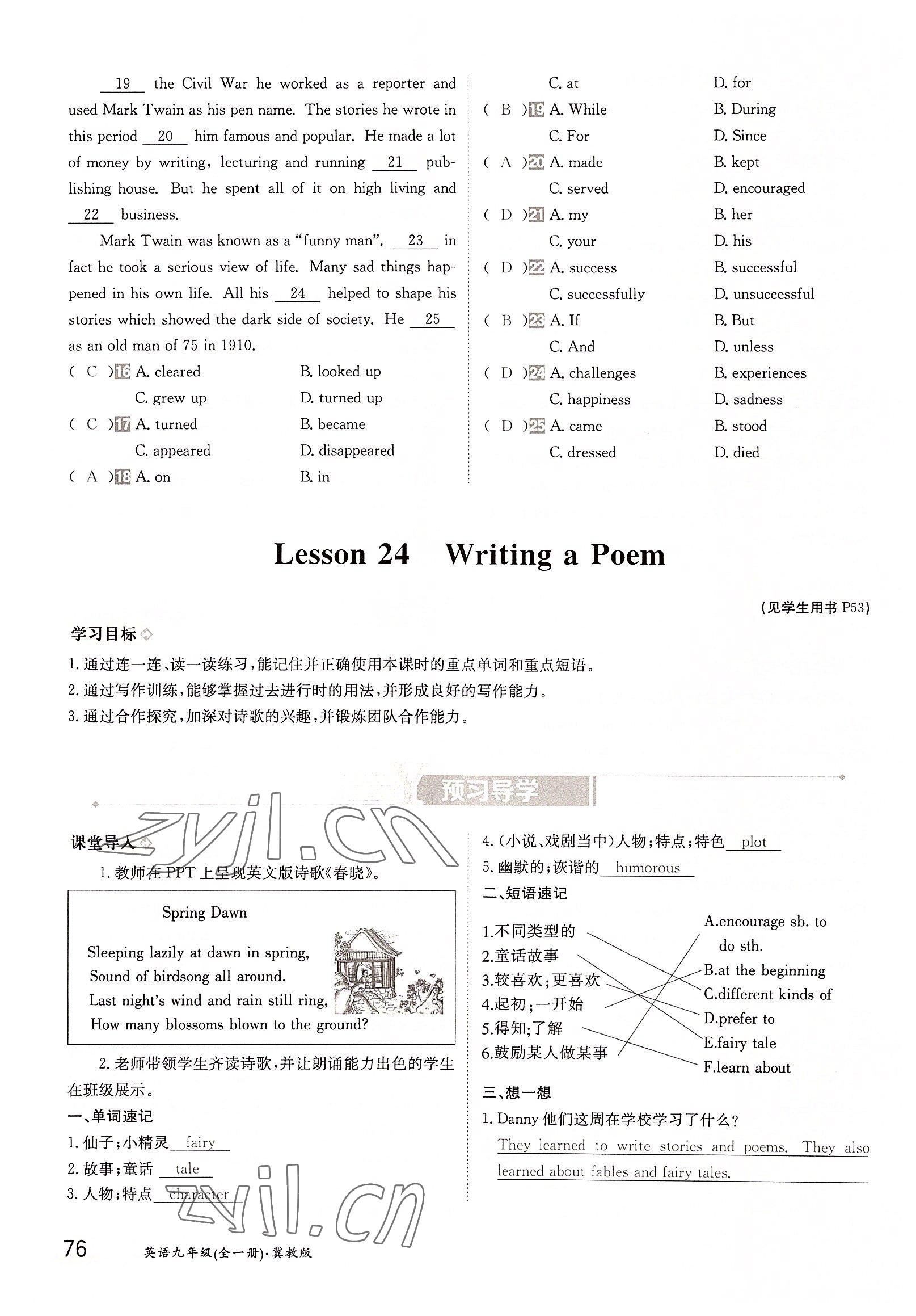 注:目前有些书本章节名称可能整理的还不是很完善,但都是按照顺序排列的,请同学们按照顺序仔细查找。练习册 2022年三段六步导学测评九年级英语全一册冀教版 答案主要是用来给同学们做完题方便对答案用的,请勿直接抄袭。