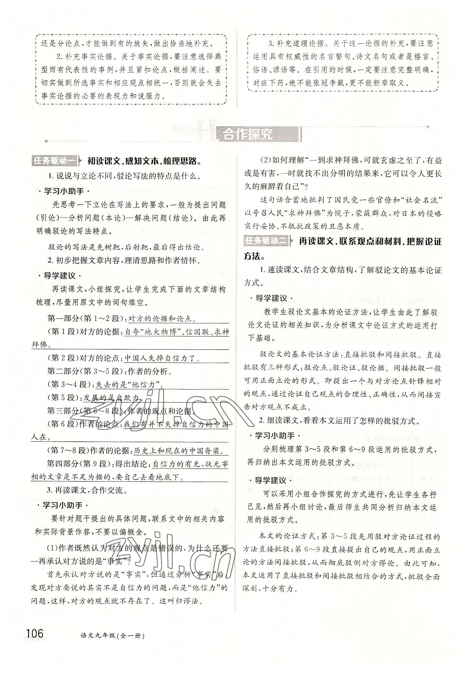 注:目前有些书本章节名称可能整理的还不是很完善,但都是按照顺序排列的,请同学们按照顺序仔细查找。练习册 2022年三段六步导学测评九年级语文全一册人教版 答案主要是用来给同学们做完题方便对答案用的,请勿直接抄袭。