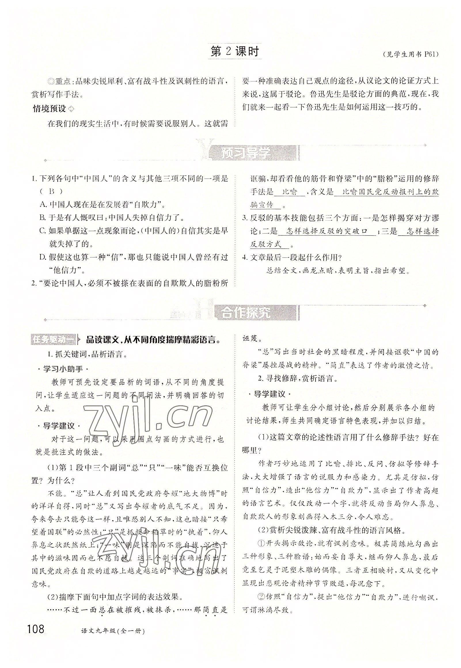 注:目前有些书本章节名称可能整理的还不是很完善,但都是按照顺序排列的,请同学们按照顺序仔细查找。练习册 2022年三段六步导学测评九年级语文全一册人教版 答案主要是用来给同学们做完题方便对答案用的,请勿直接抄袭。