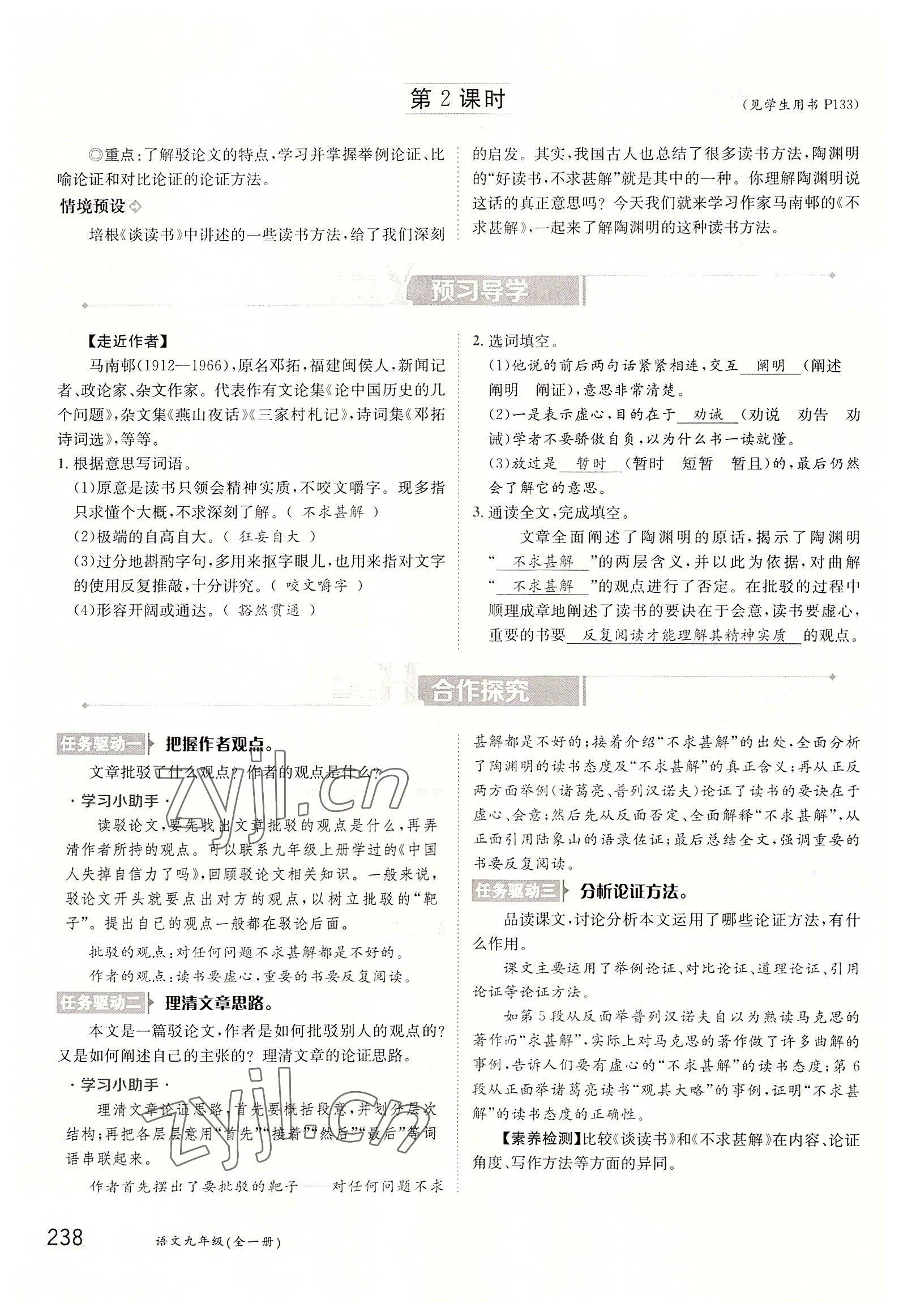 注:目前有些书本章节名称可能整理的还不是很完善,但都是按照顺序排列的,请同学们按照顺序仔细查找。练习册 2022年三段六步导学测评九年级语文全一册人教版 答案主要是用来给同学们做完题方便对答案用的,请勿直接抄袭。
