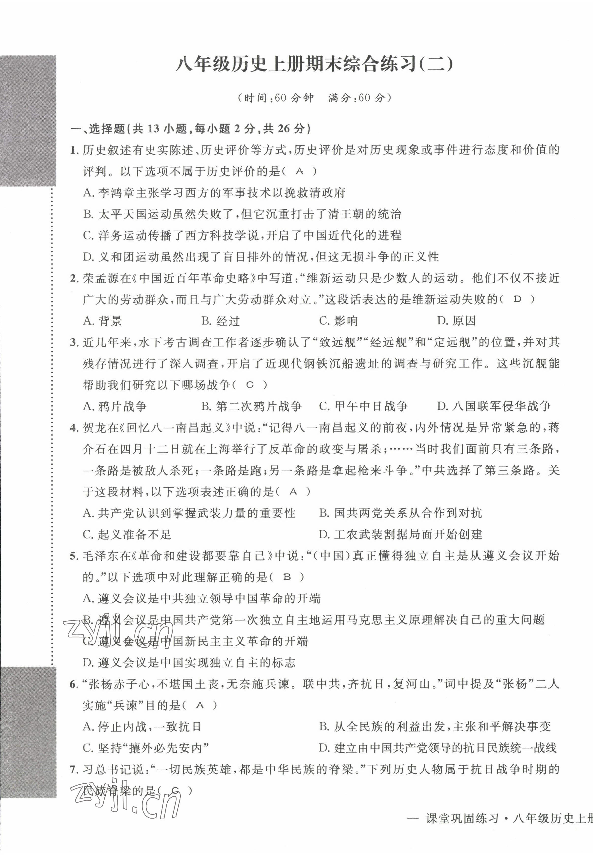 注:目前有些书本章节名称可能整理的还不是很完善,但都是按照顺序排列的,请同学们按照顺序仔细查找。练习册 2022年课堂巩固练习八年级历史上册人教版 答案主要是用来给同学们做完题方便对答案用的,请勿直接抄袭。