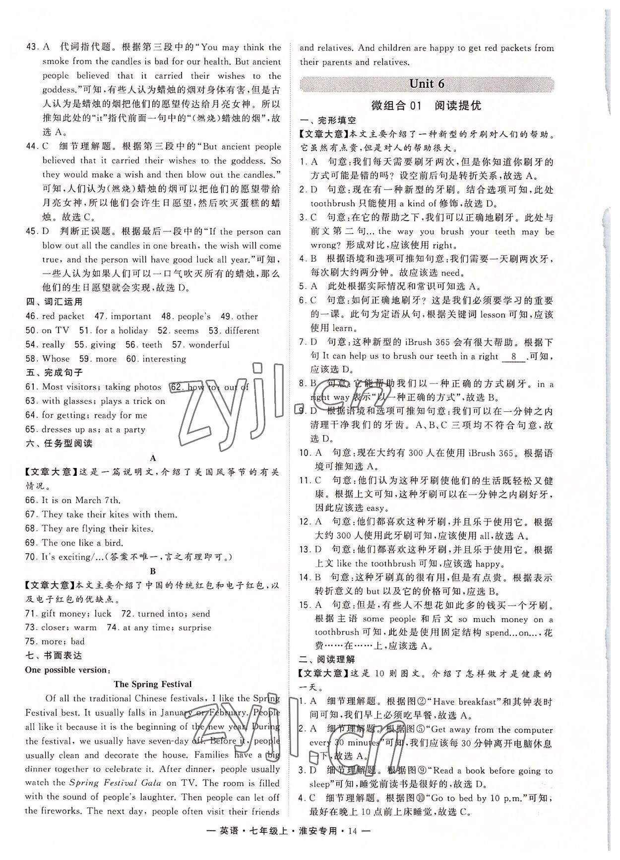 注:目前有些书本章节名称可能整理的还不是很完善,但都是按照顺序排列的,请同学们按照顺序仔细查找。练习册 2022年学霸组合训练七年级英语上册译林版淮安专版 答案主要是用来给同学们做完题方便对答案用的,请勿直接抄袭。
