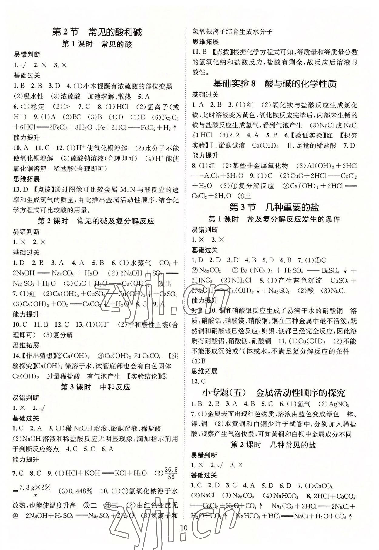 注:目前有些书本章节名称可能整理的还不是很完善,但都是按照顺序排列的,请同学们按照顺序仔细查找。练习册 2022年名师测控九年级化学全一册人教版遵义专版 答案主要是用来给同学们做完题方便对答案用的,请勿直接抄袭。