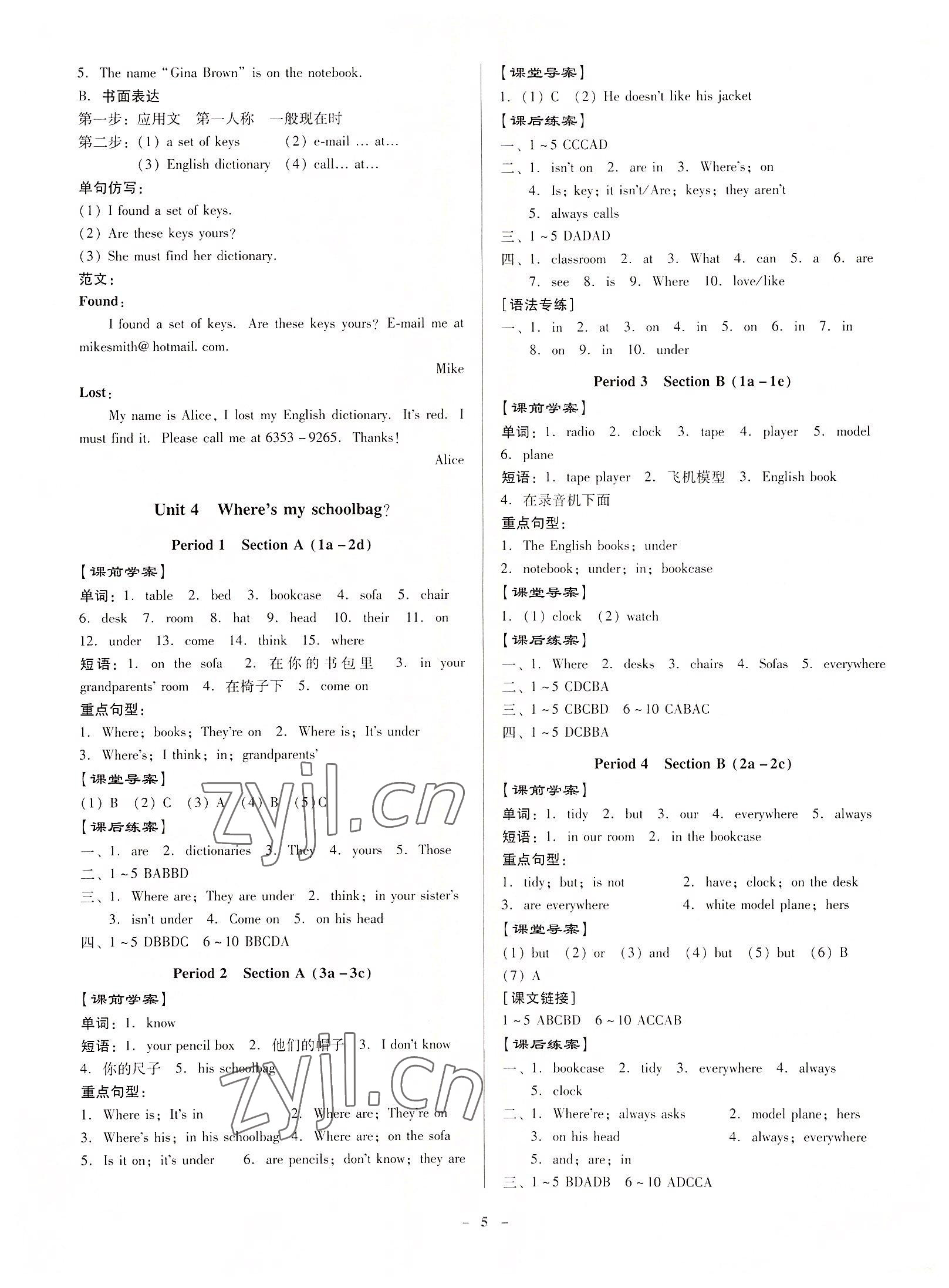 注:目前有些书本章节名称可能整理的还不是很完善,但都是按照顺序排列的,请同学们按照顺序仔细查找。练习册 2022年金牌导学案七年级英语上册人教版 答案主要是用来给同学们做完题方便对答案用的,请勿直接抄袭。
